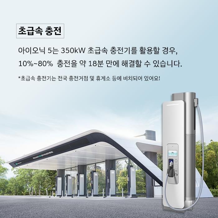아이오닉5는 초급속 충전기 350kw를 이용하면 10%~80% 충전을 약 18만에 해결 할 수 있다고 해요. 4월 19일부터 실제로 출시가 되고 있기 때문에 실제로 경험한 사람들이 등장하면 얼마나 빠른 충전이 되는지 검증이 될 거 같아요.