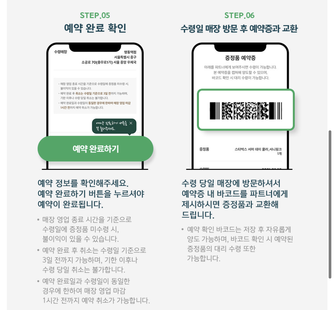 예약도 적립기간이랑 시작일은 같아요. 대신 달라진점은 이프리퀀시 미션을 성공하고 증정품은 스타벅스 모바일 앱에서 예약 후 매장 방문 시에만 수령이 가능한걸로 변경이 된거죠.