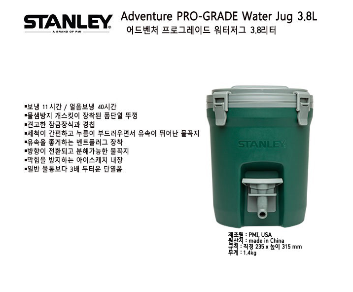 스탠리 워터저그만 봐도 엄청난 보냉시간과 얼음보냉 40시간을 자랑 하기 때문에 특히 여름에 캠핑용품은 장비에 디자인보단 기능을 항상 우선을 생각하는게 좋다.