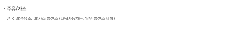 마지막은 SK 관련 렌트카 및 스피드 메이트에서 사용이 가능하니깐 차량 수리시에도 이용이 가능한거죠.