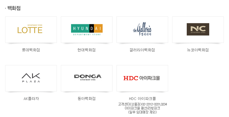 HDC 아이파크몰 고객센터(상품권):02-2012-0201,0204 아이파크몰 패션/리빙파크 (일부 임대매장 제외)