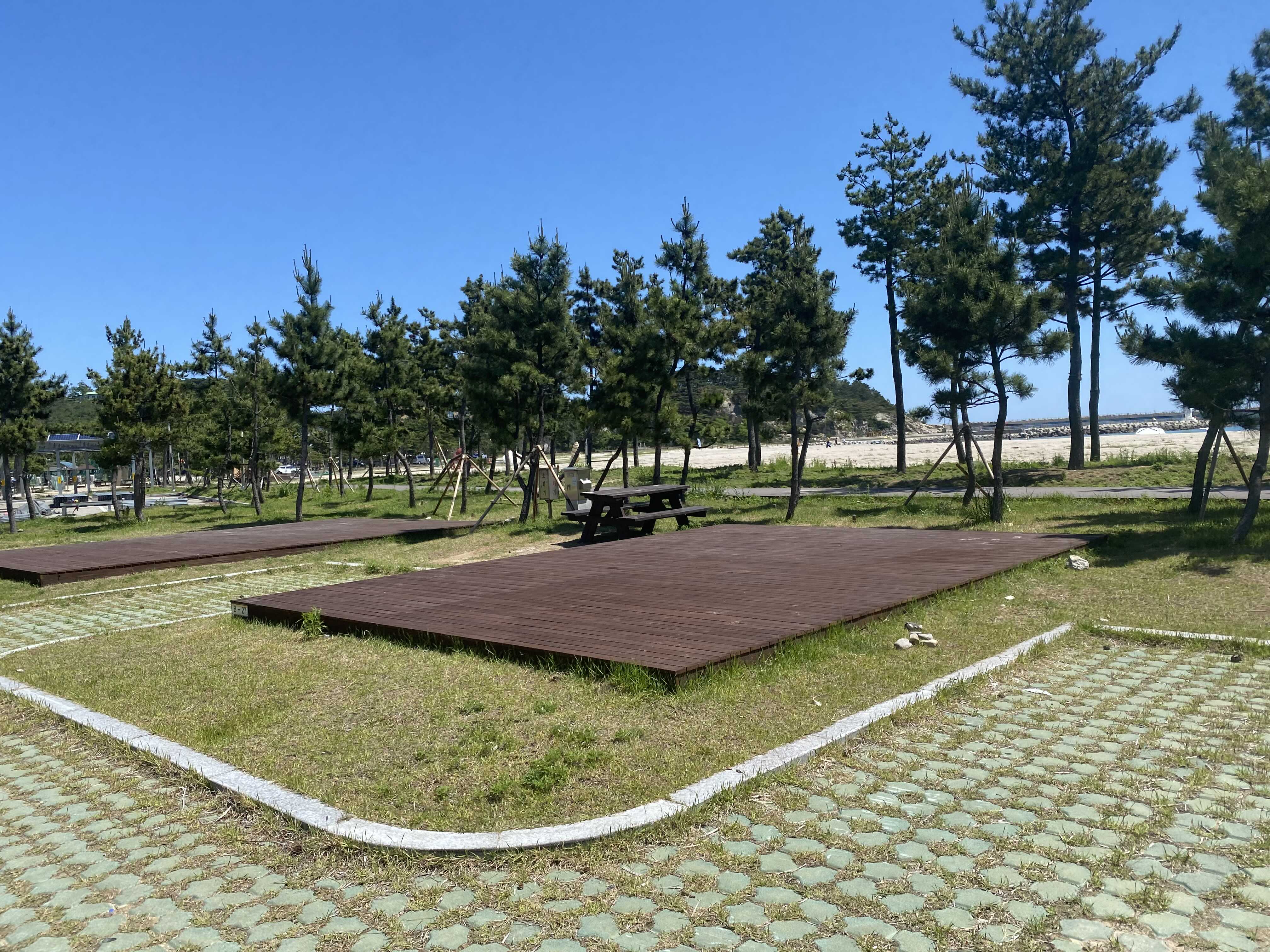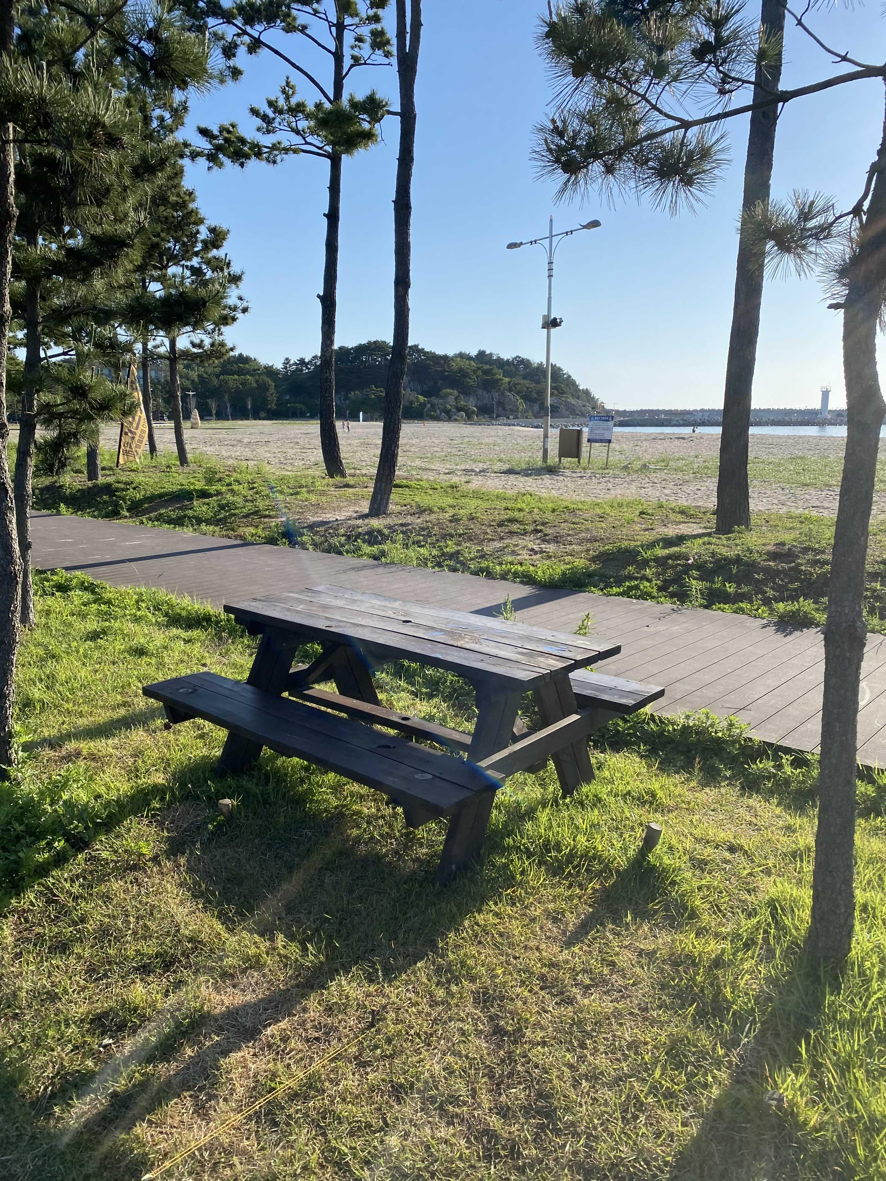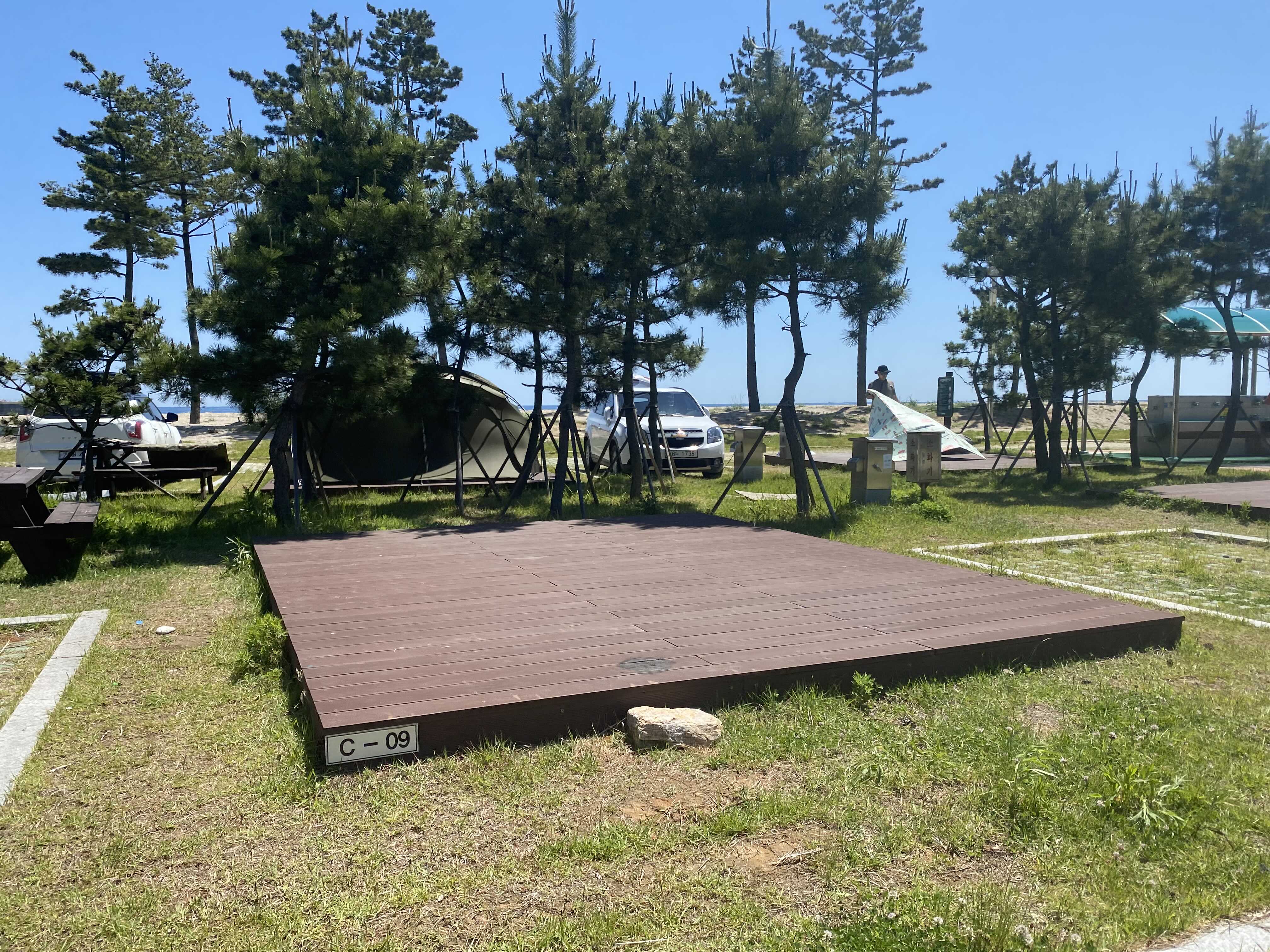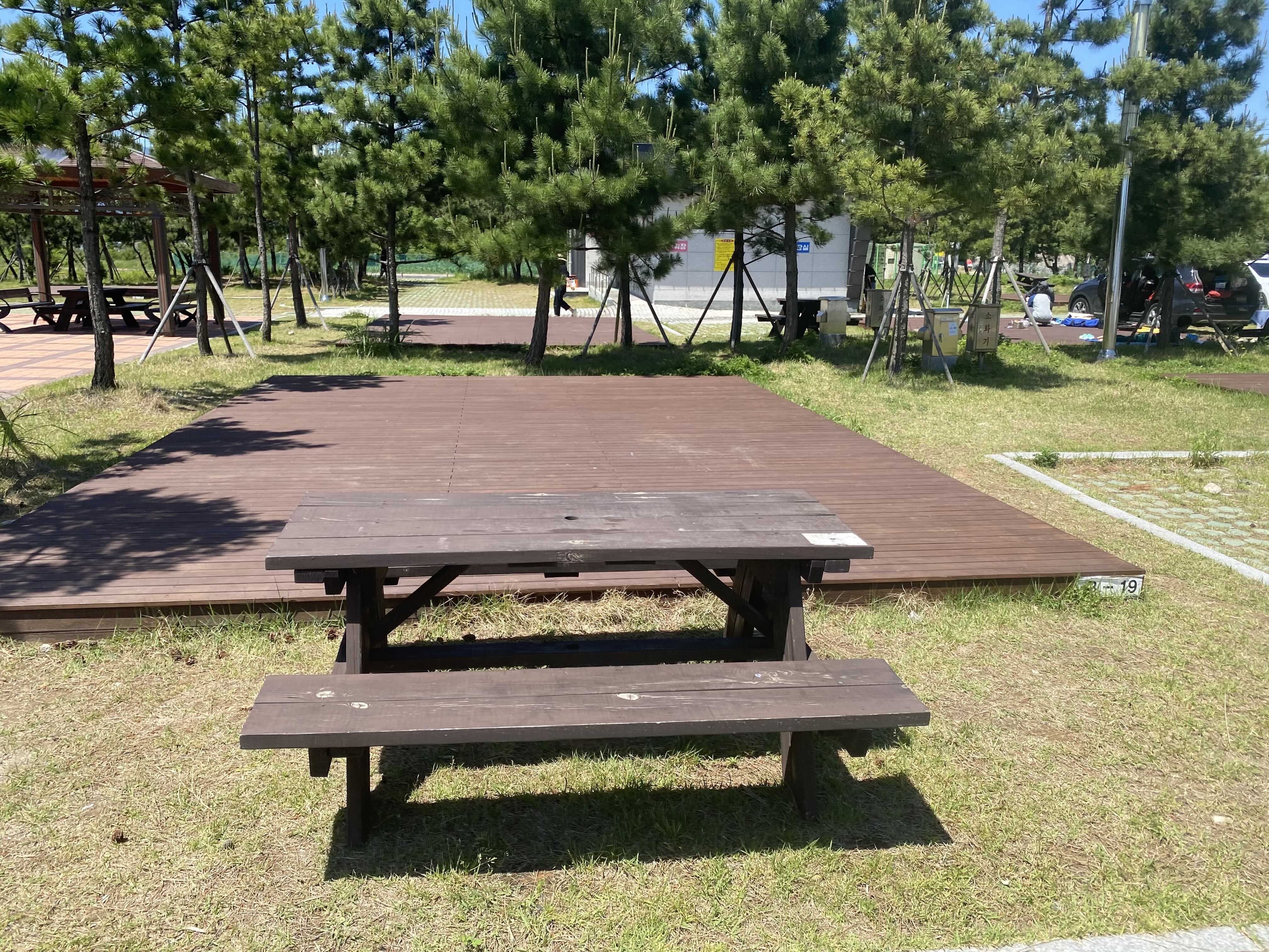A구역 B구역 C구역엔 이렇게 기본적으로 나무테이블이 있어서 테이블이나 의자가 없어서 이용을 할 수 있어서 좋은거 같아요. 특히 여름엔 해수욕을 하고 캠핑의자에 못앉을때 여기를 이용하면 딱 좋을거 같더라구요 ㅋㅋㅋ