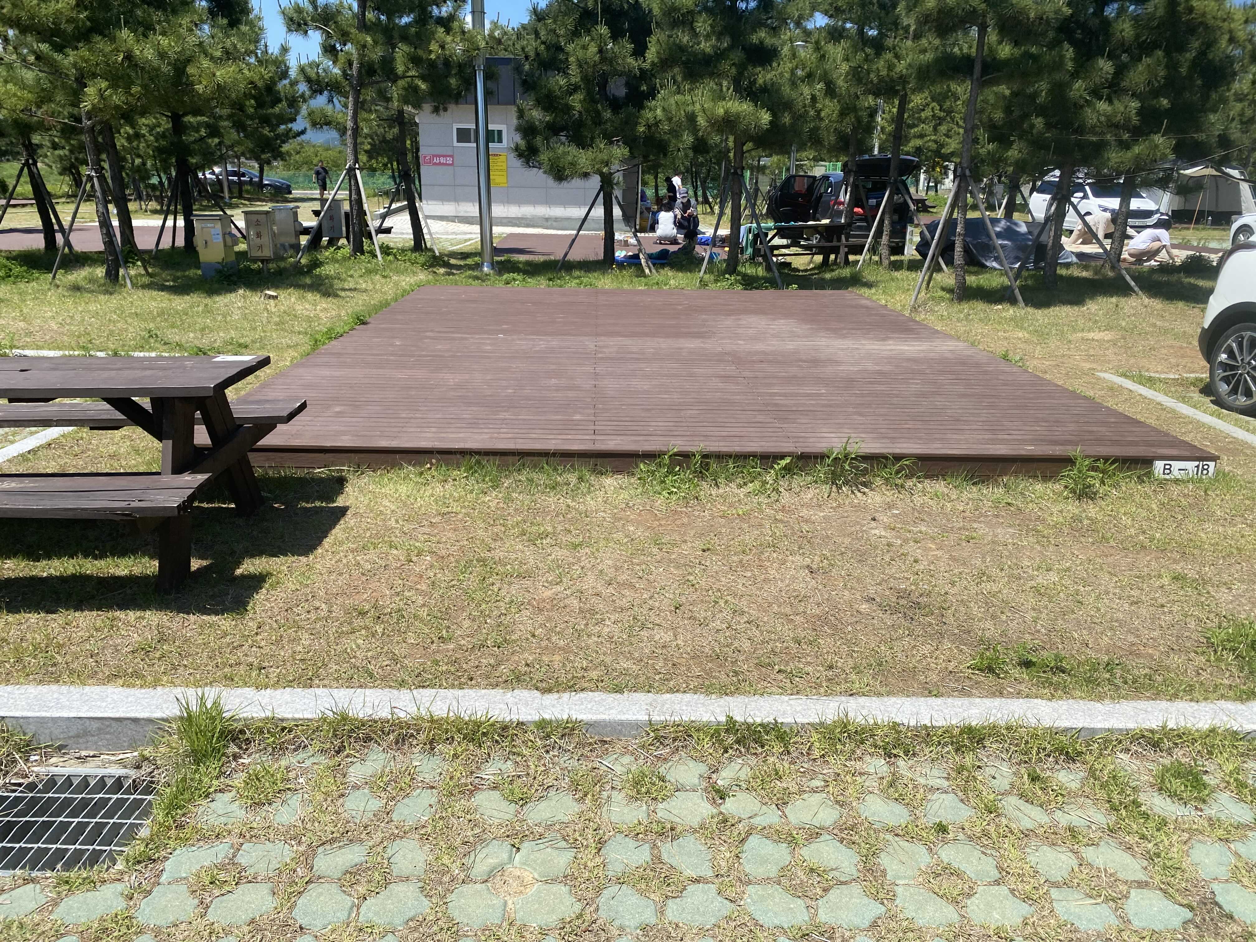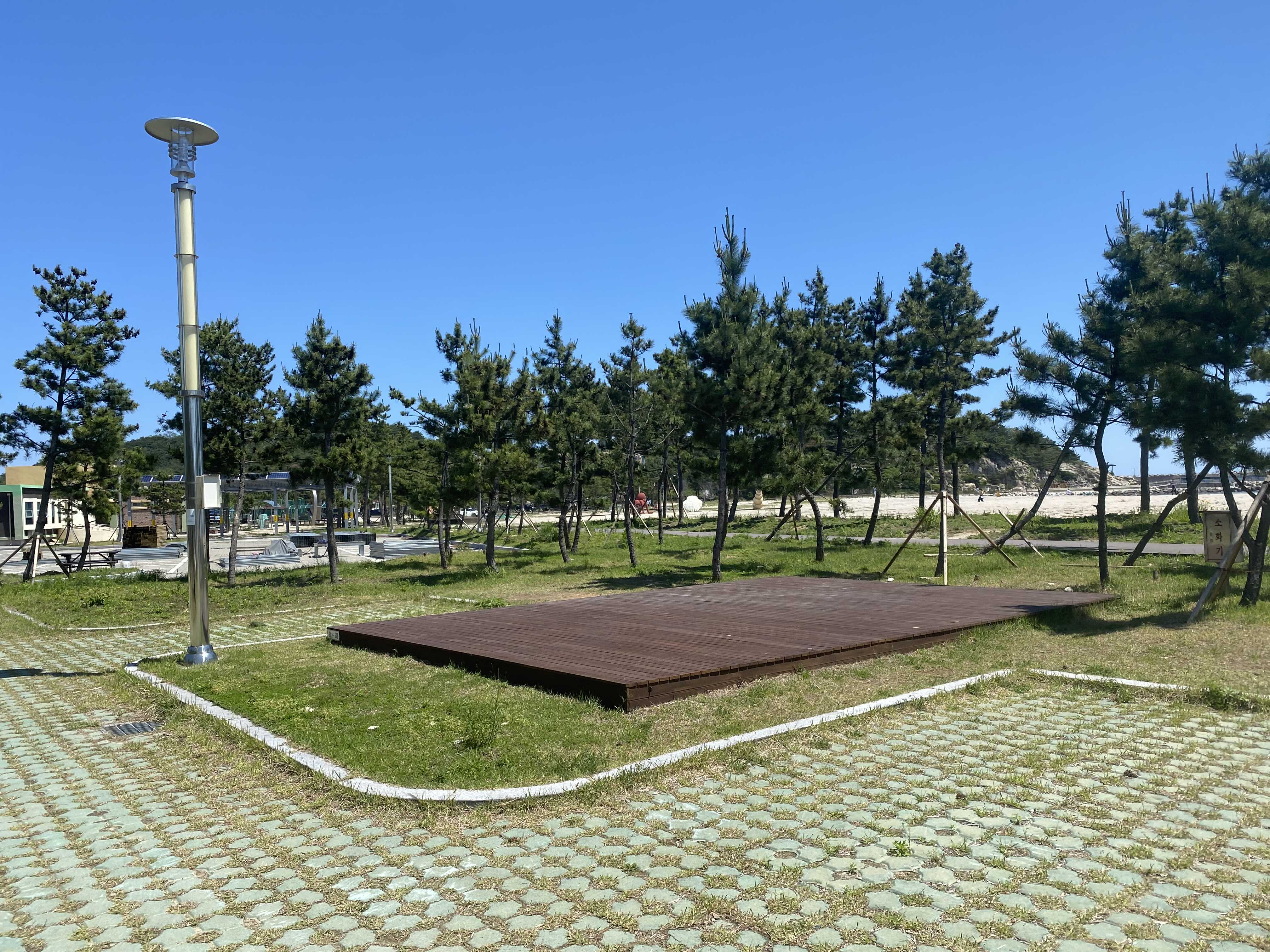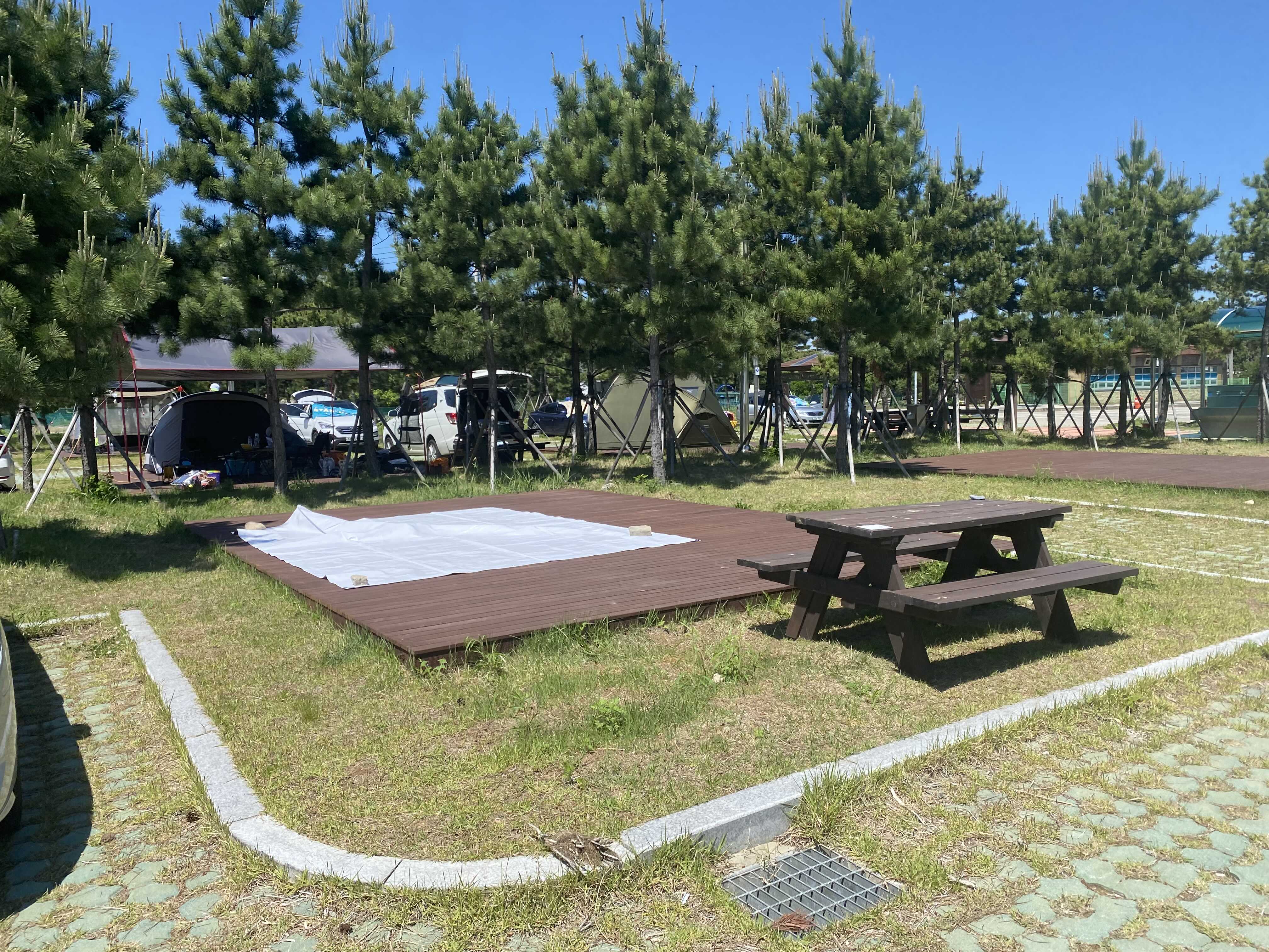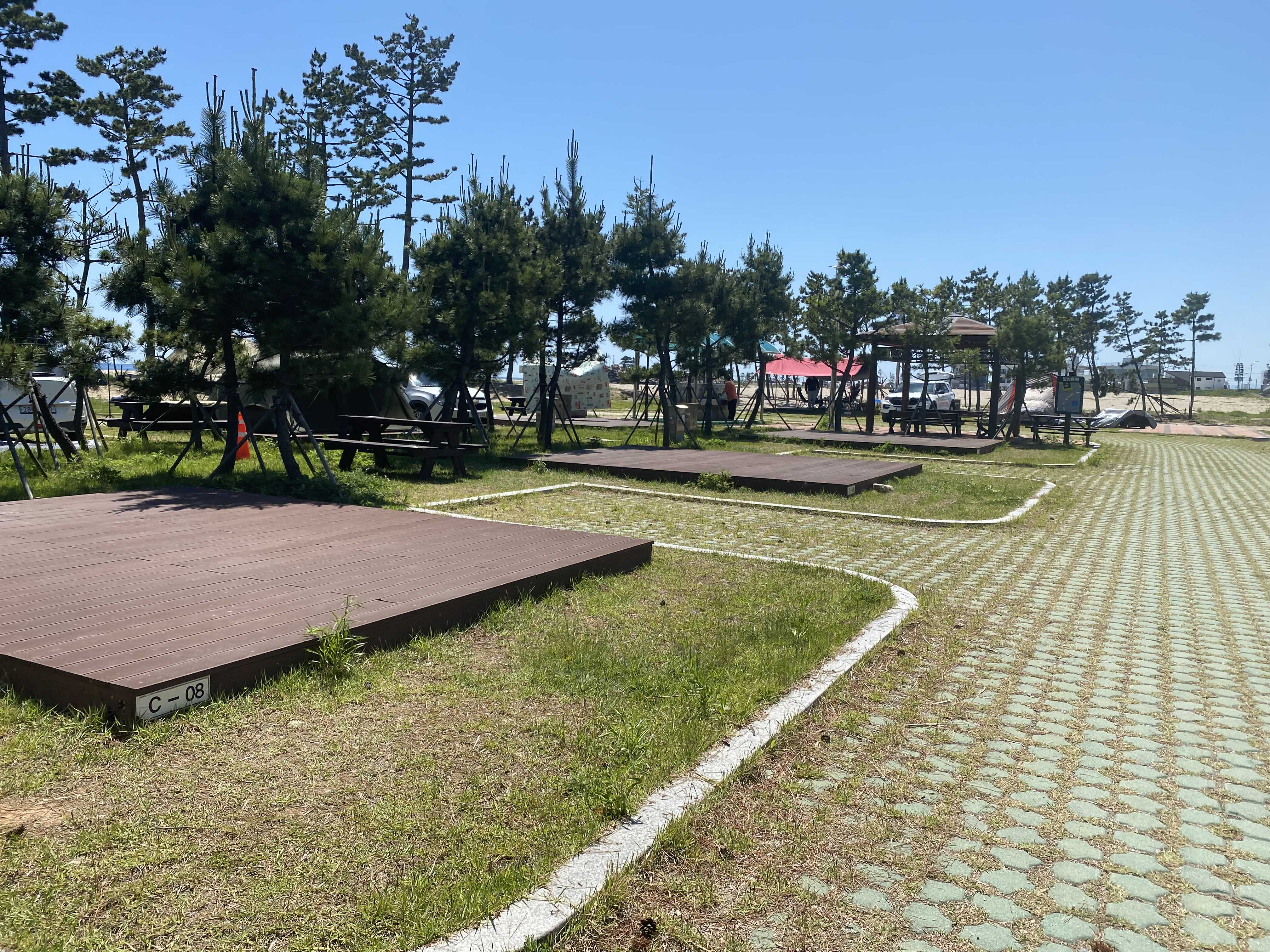 A구역 B구역 C구역엔 이렇게 기본적으로 나무테이블이 있어서 테이블이나 의자가 없어서 이용을 할 수 있어서 좋은거 같아요. 특히 여름엔 해수욕을 하고 캠핑의자에 못앉을때 여기를 이용하면 딱 좋을거 같더라구요 ㅋㅋㅋ
