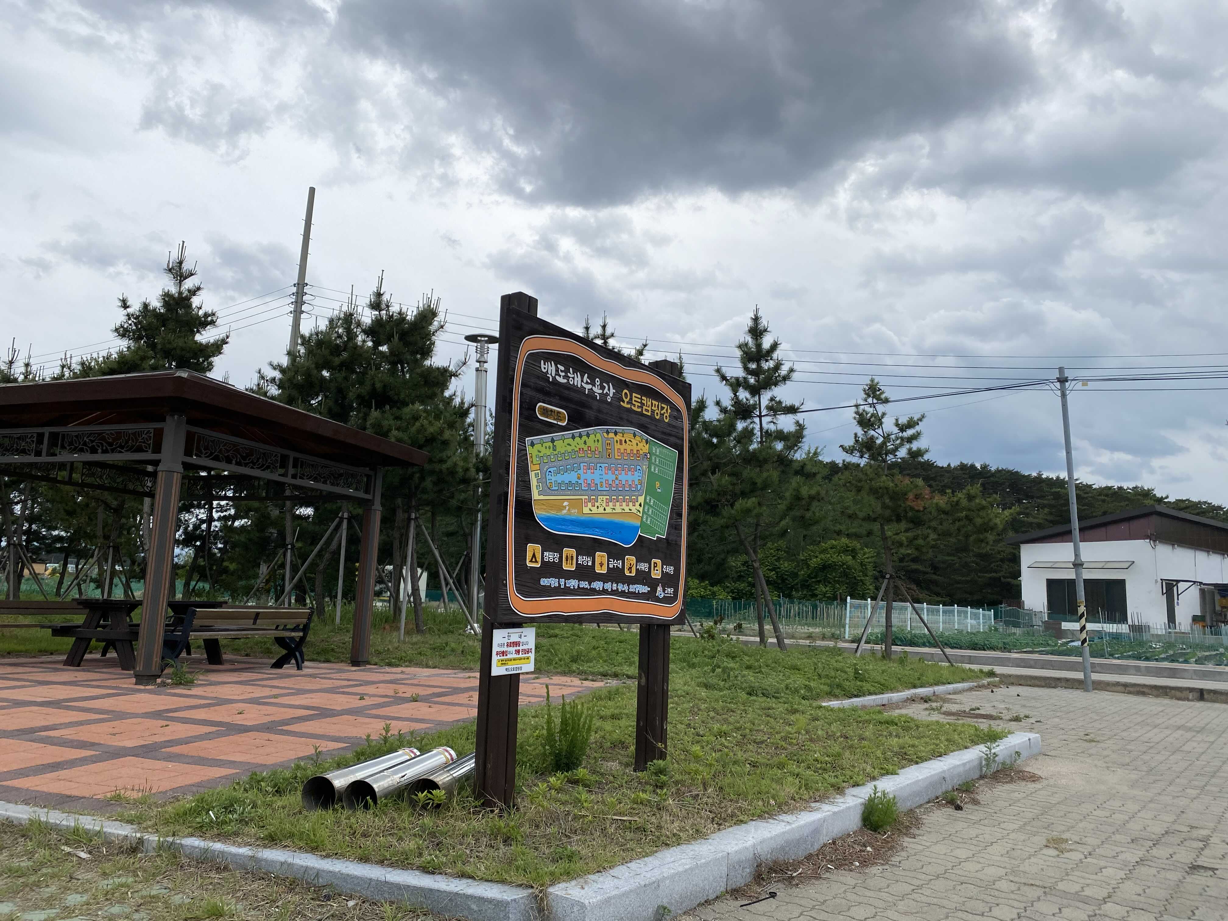 백도해수욕장 주차장 안으로 쭈욱 들어오면 이렇게 백도해수욕장 오토캠핑장 안내도가 나와 있어요.