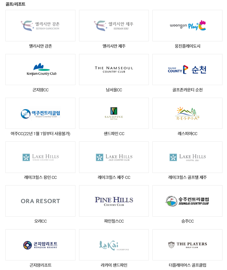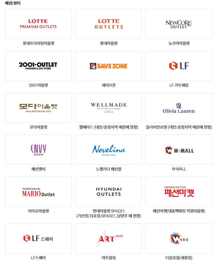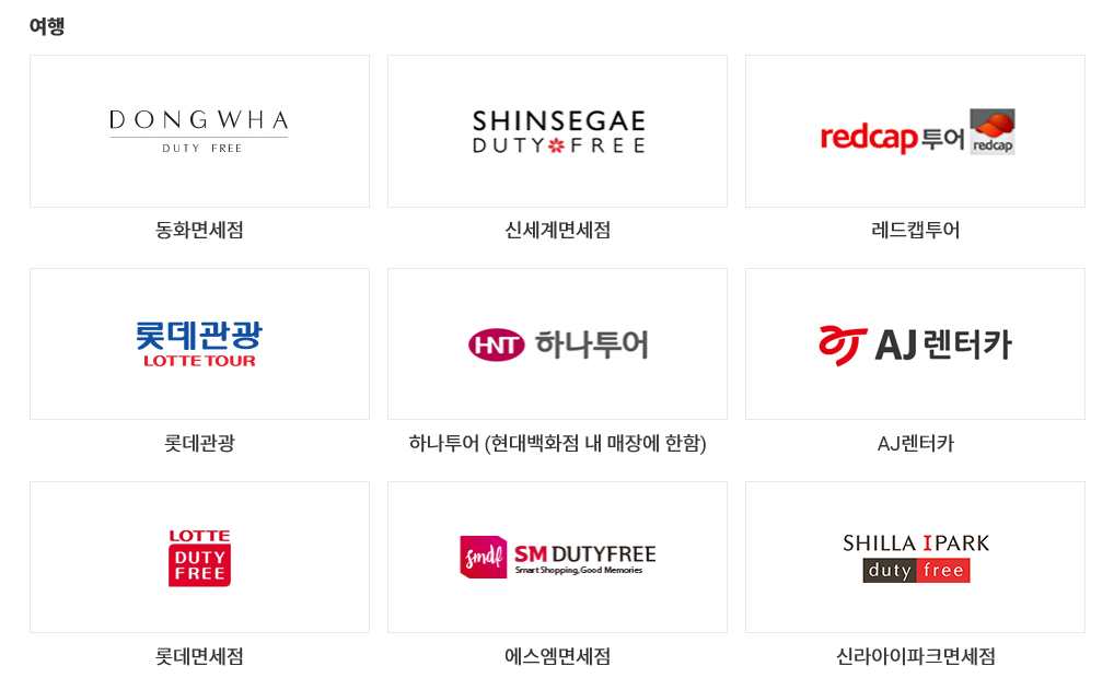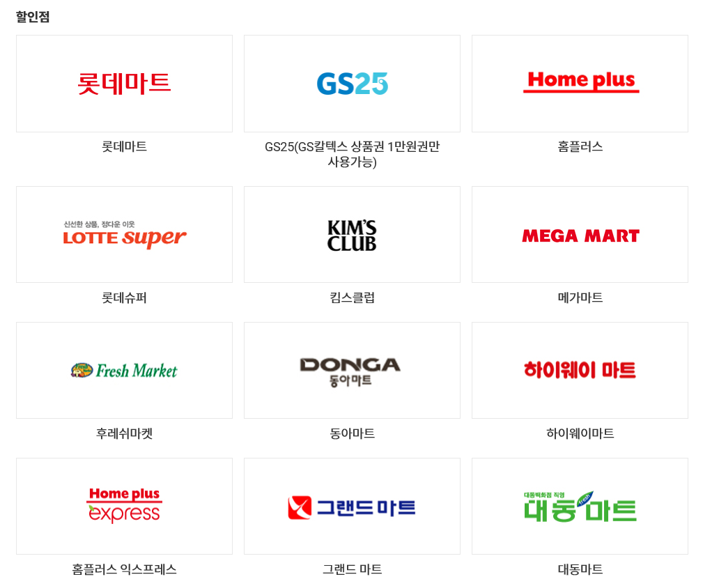 2020년 6월 30일부로 "부산아쿠아리움(멀린엔터테인먼트)"와의 제휴가 종료되어 상품권 사용이 불가합니다. 2018년 3월 31일부로 "삼천리자전거"와의 제휴가 종료되어 상품권 사용이 불가합니다.