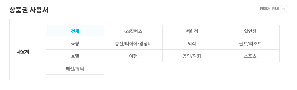 <GS 상품권 사용처>