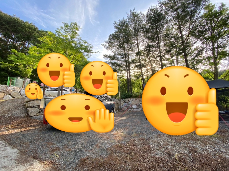 엄지 이모티콘이 텐트자리 손바닥 이모티콘이 주차한 자리로 보시면 되요.