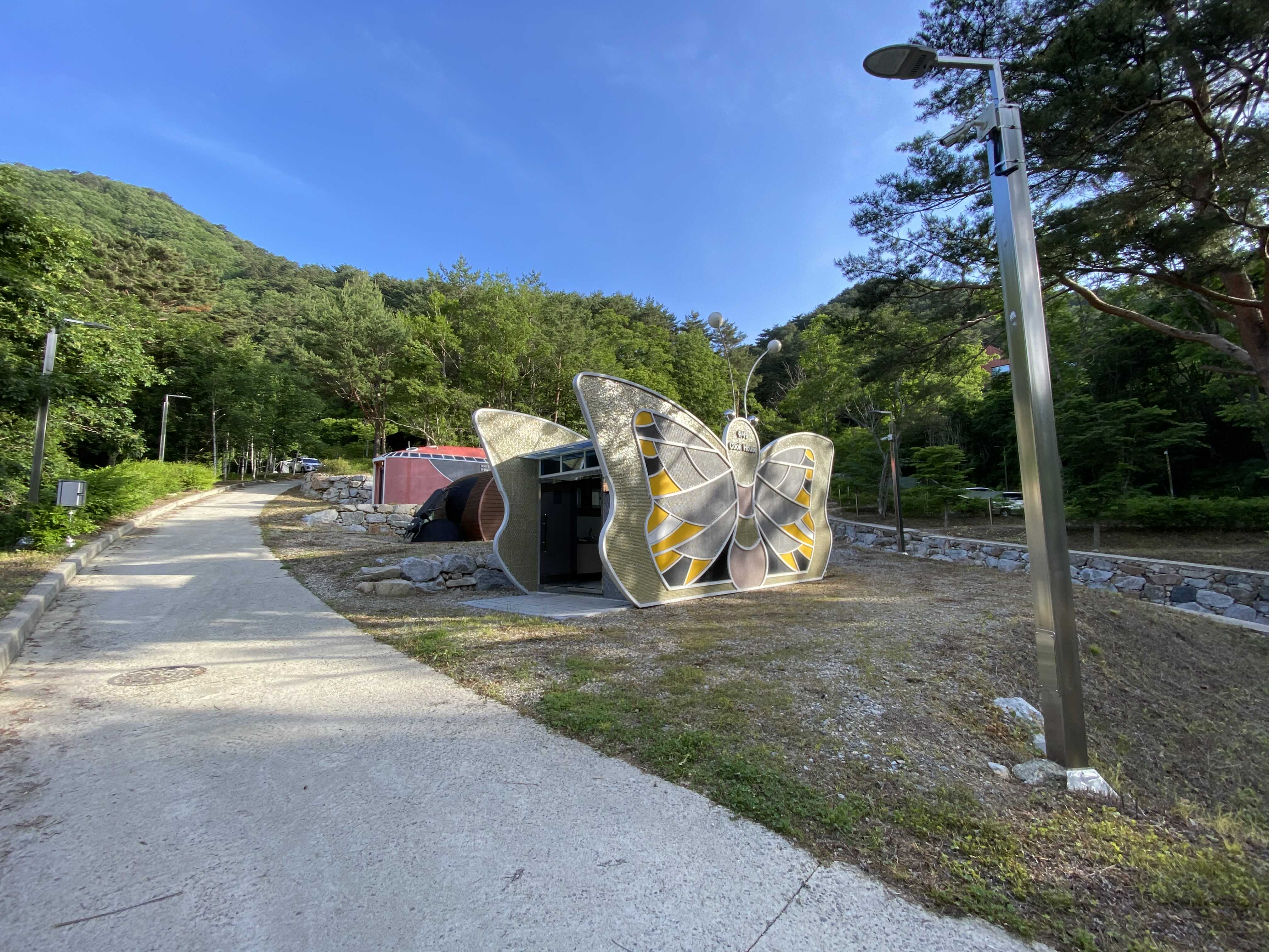 일단 제가 처음에 문의 했을땐 차량 진입이 어렵다고 했는데 와서 보니깐 그건 아니였어요. 빨간 건물 사이나 나비 개수대 앞쪽 건물 사이 길로 차량이 올라가면 되더라구요.