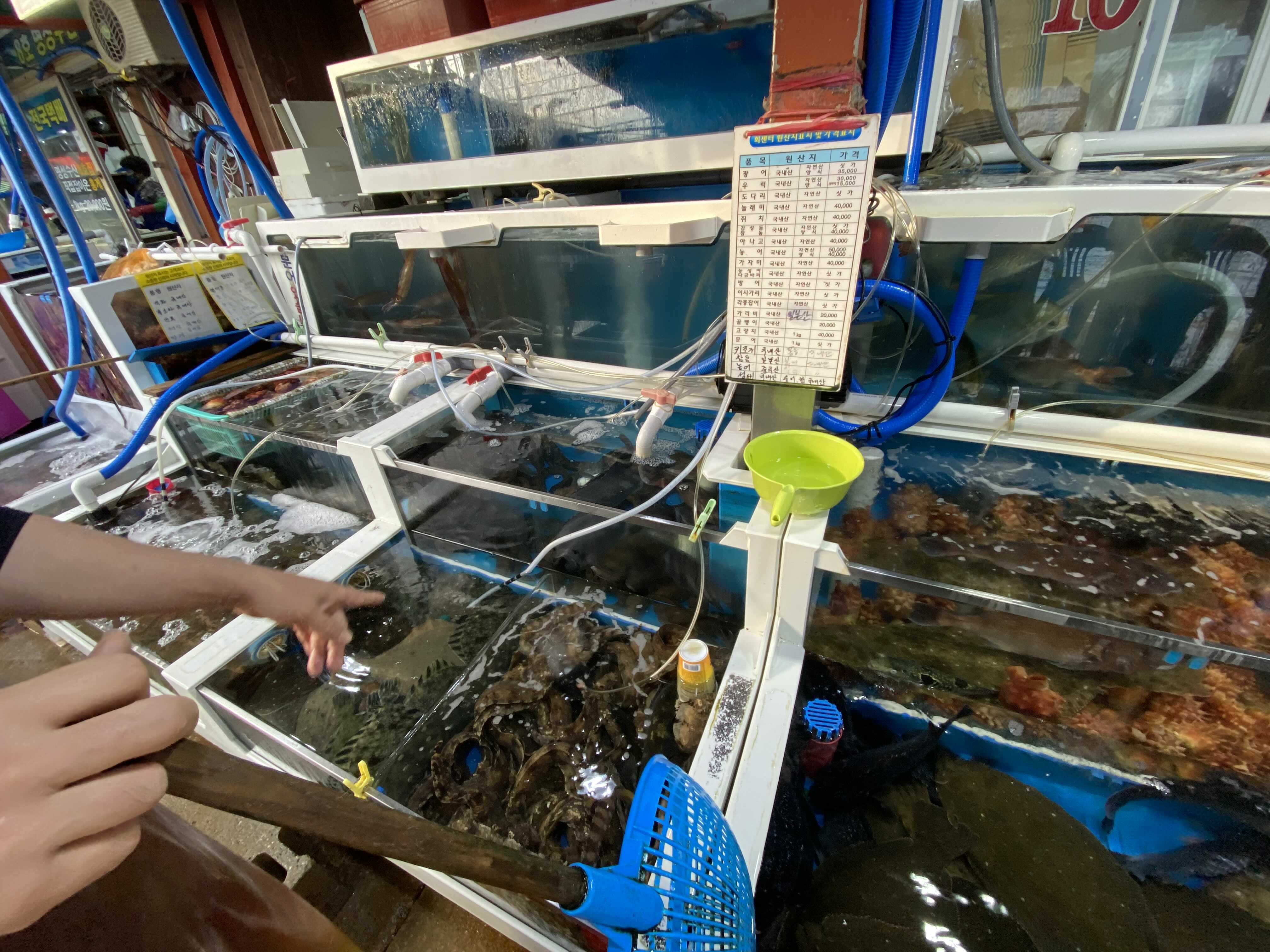 남자 사장님이 손으로 표시 하는게 바로 전복치예요 ㅋㅋㅋ
