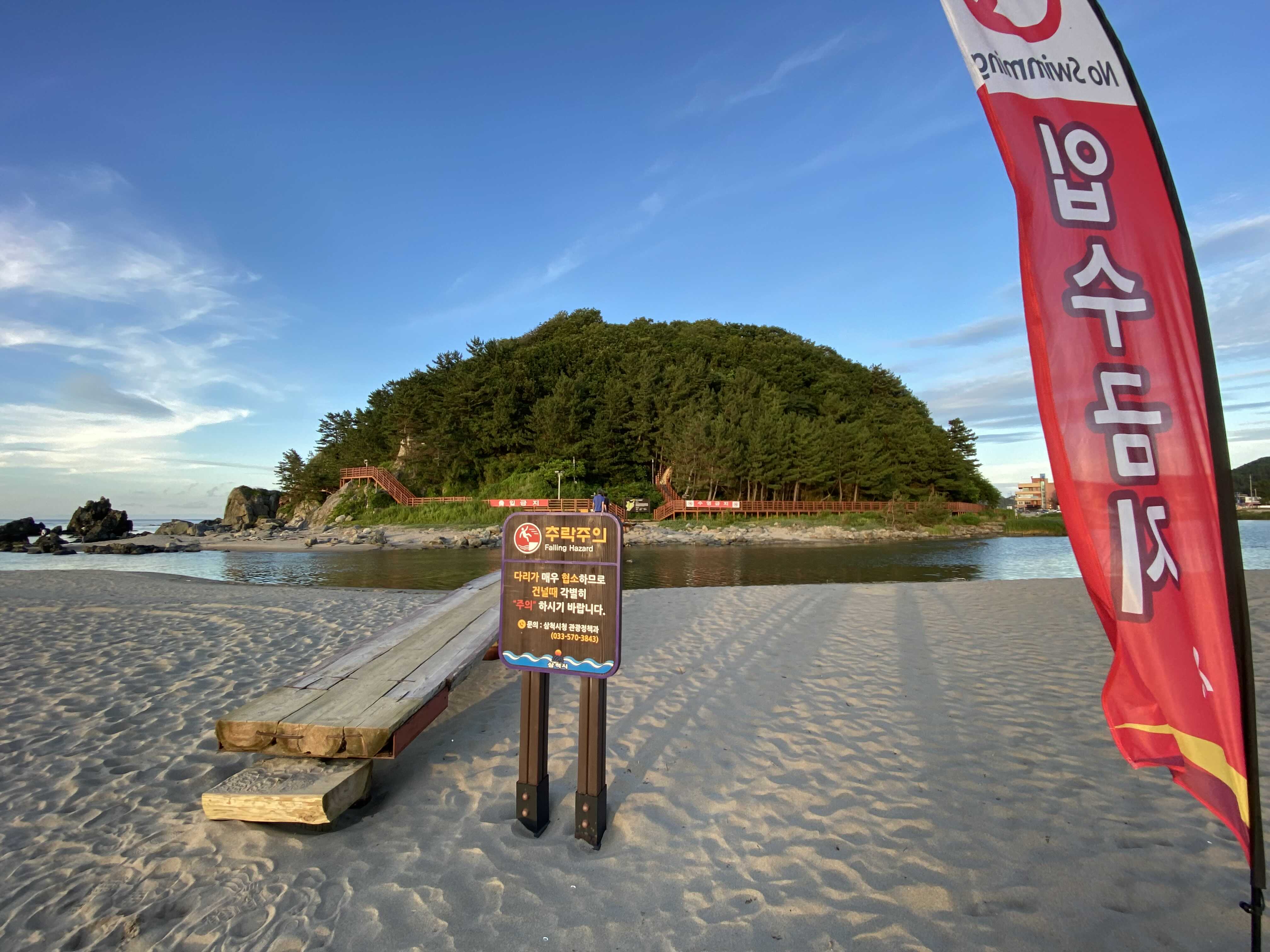 저는 이번에도 맹방해수욕장쪽으로 방문을 했는데 지난번과 달라진 부분은 해수욕장 개장을 하면 강물과 바닷물이 만나는 지점에서 수영이랑 덕봉산 옆에 데크 길 말고 들어 가는건 금지가 되어 있더라구요 .