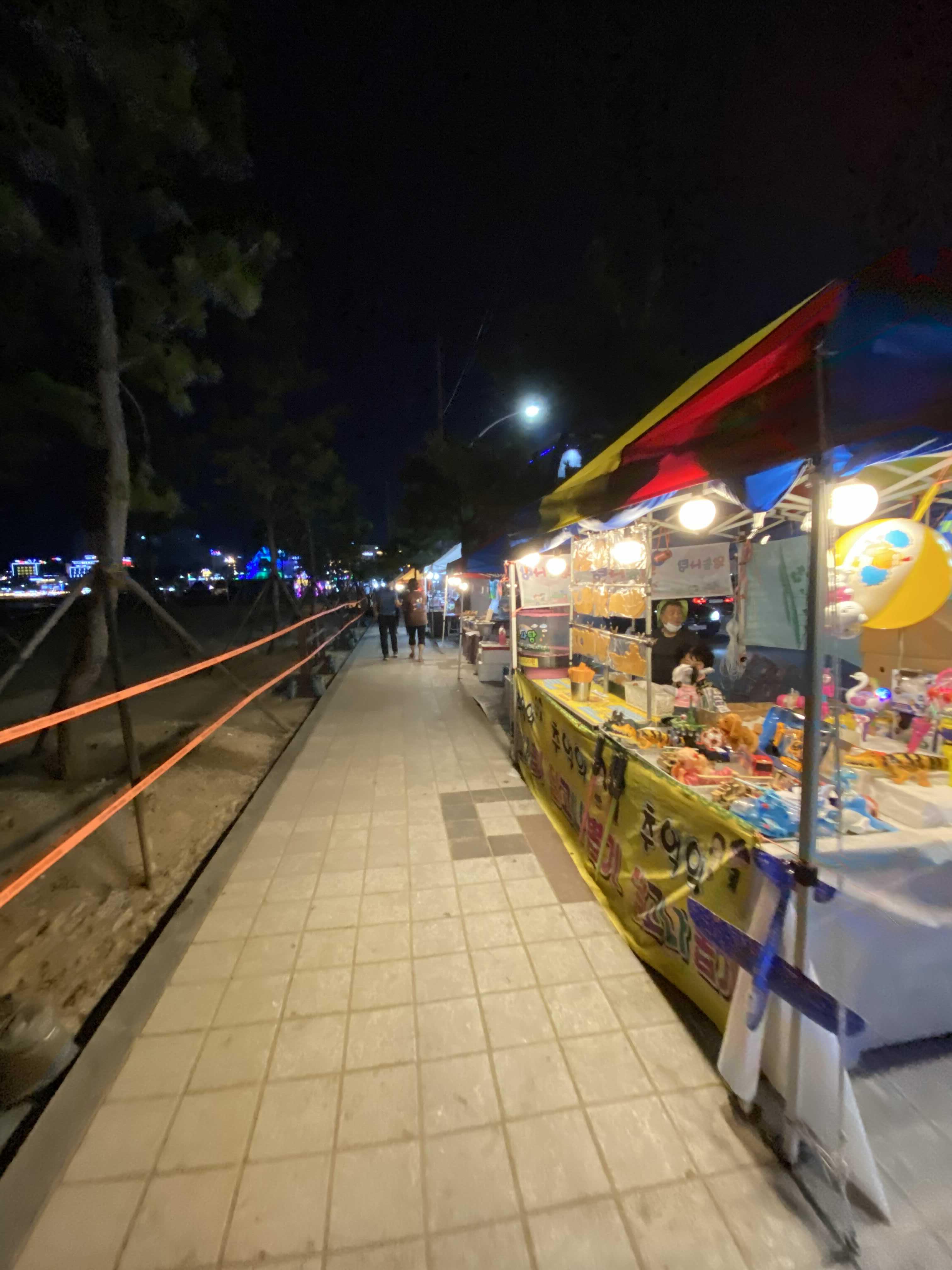 취사가 안되는만큼 근처에 먹거리랑 만물가게등 많은 먹을거리와 놀잇거리들을 판매하고 계신분들이 많아요.