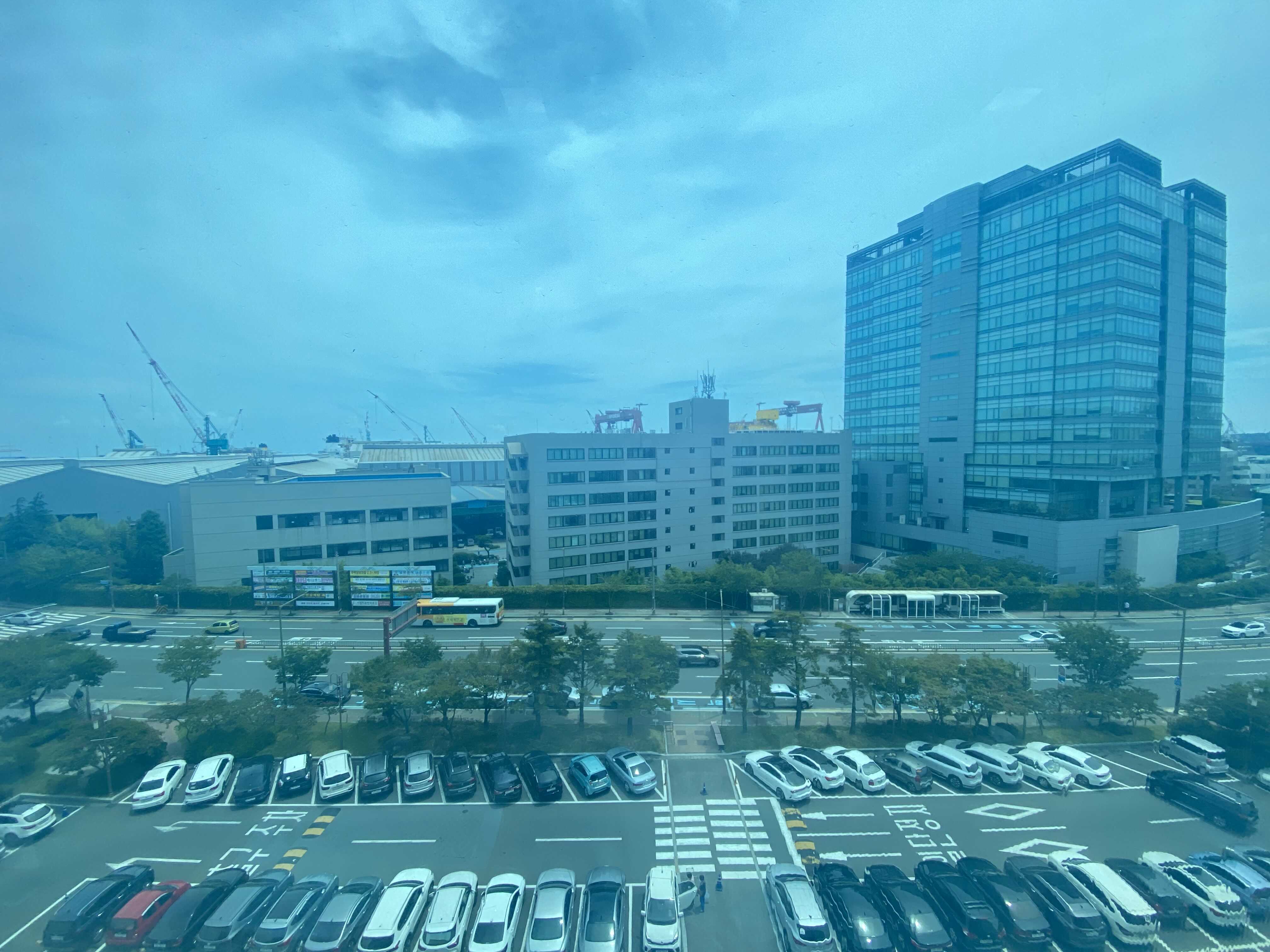 바로 앞이 바로 현대중공업 본사 건물이고 정문이고 옆에 울산현대호텔, 그 옆엔 울산대학병원 이렇게 전부다 위치해 있죠.