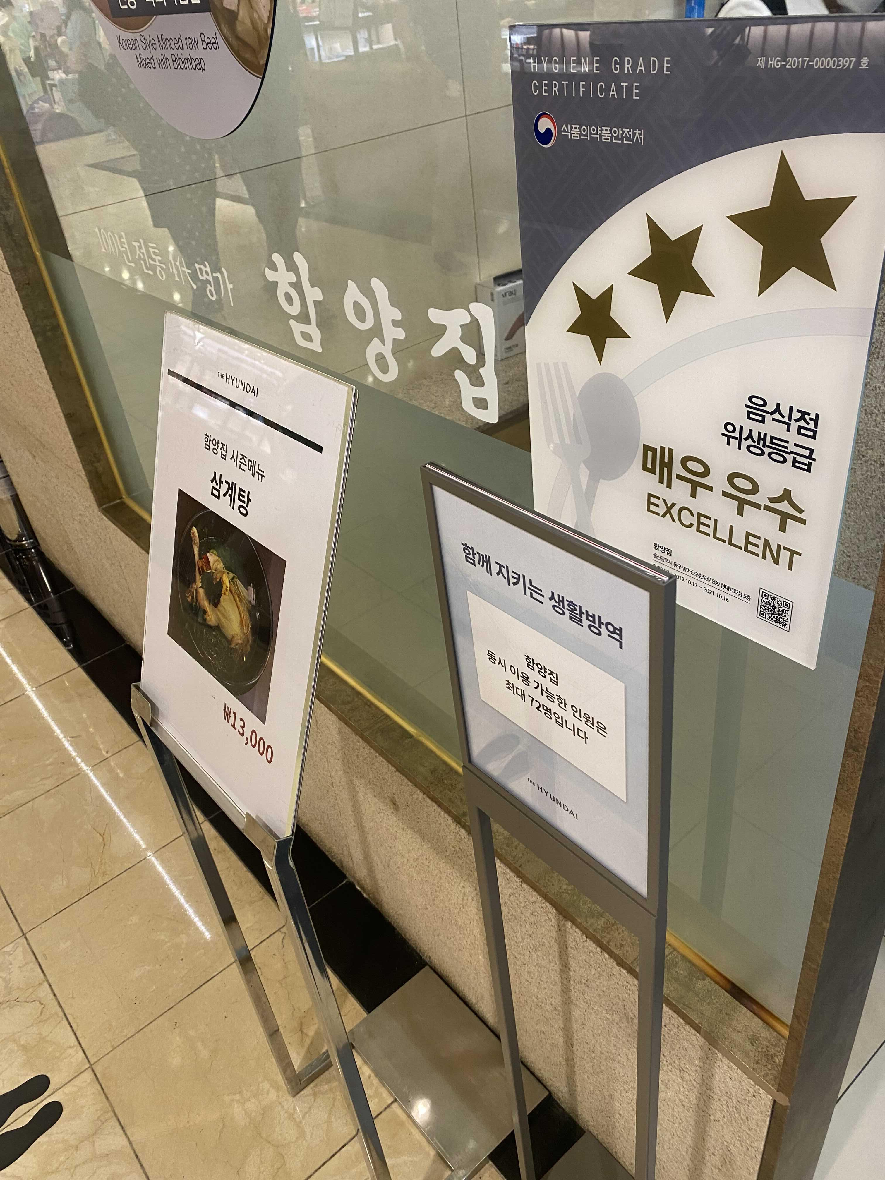 여름엔 이렇게 함양집 시즌메뉴라고 해서 삼계탕도 하고 있어요. 또 식약청에서 하는 음식점 위생등급 매우 우수 가게라서 믿고 먹을 수 있는 매장이라고 보시면되요!! ㅎㅎ