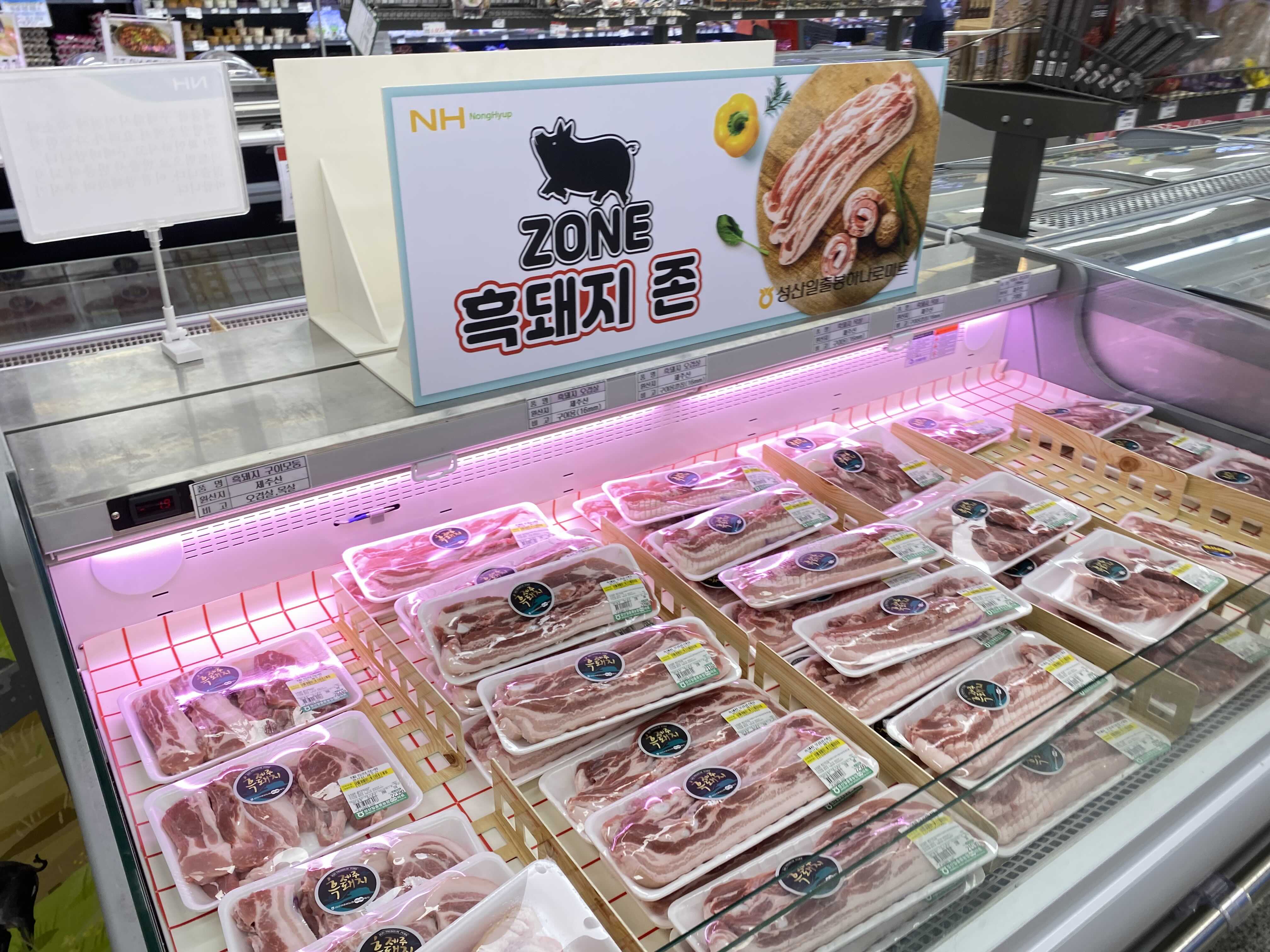 농협 흑돼지존 이라고 해서 근처에서 팬션이나 리조트에서 BBQ 바베큐 존으로 해서 아예 고기를 두껍게 팔고 있고 흑돼지삼겹살, 흑돼지목살 등 다양하게 팔고 있어서 구입하게 좋더라구요.