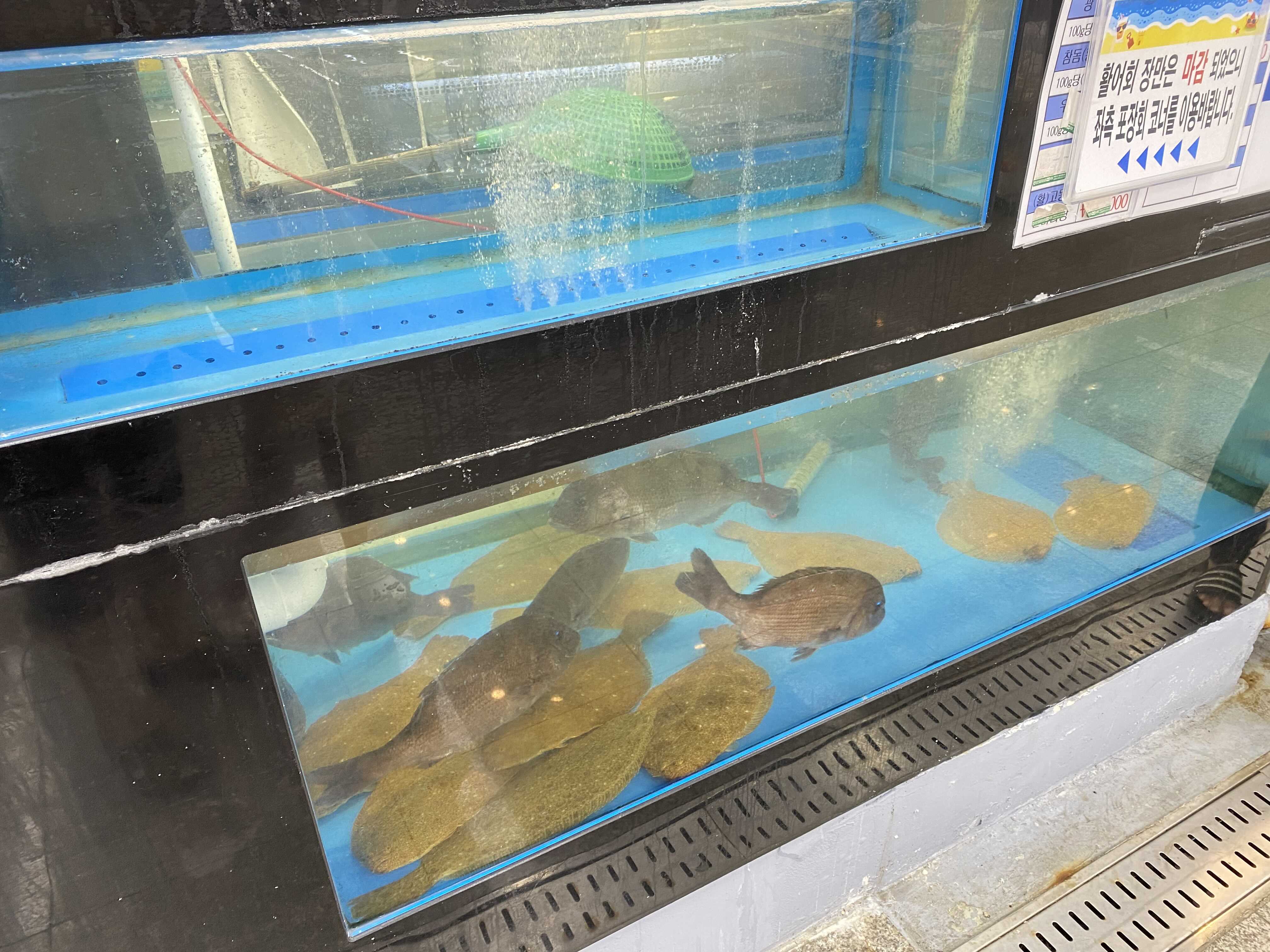 수족관에는 참돔이랑 광어가 있더라구요 ㅋㅋ