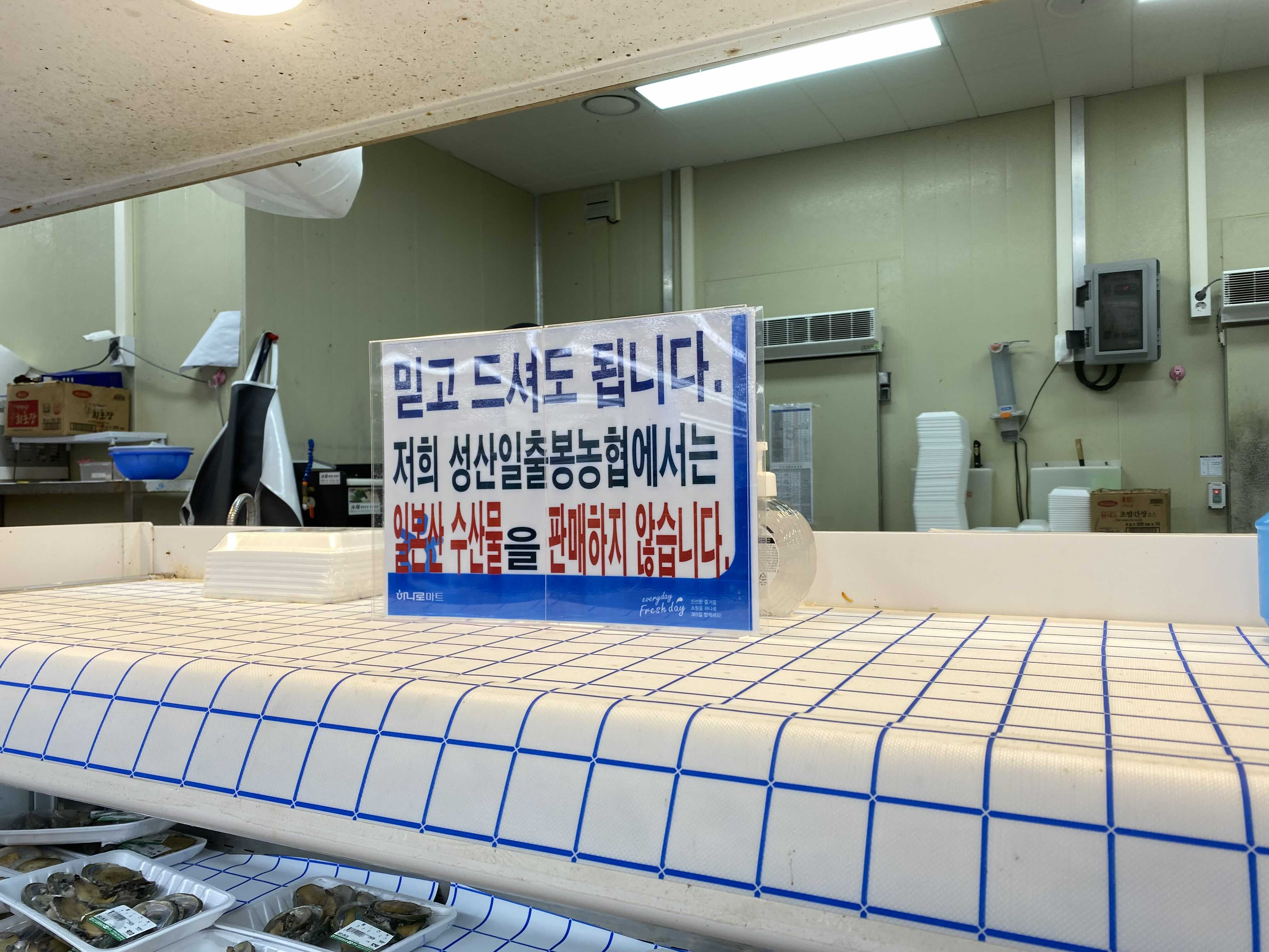 저희 성산일출봉농협에서는 일본산 수산물을 판매하지 않는다고 명시 해놨더라구요.