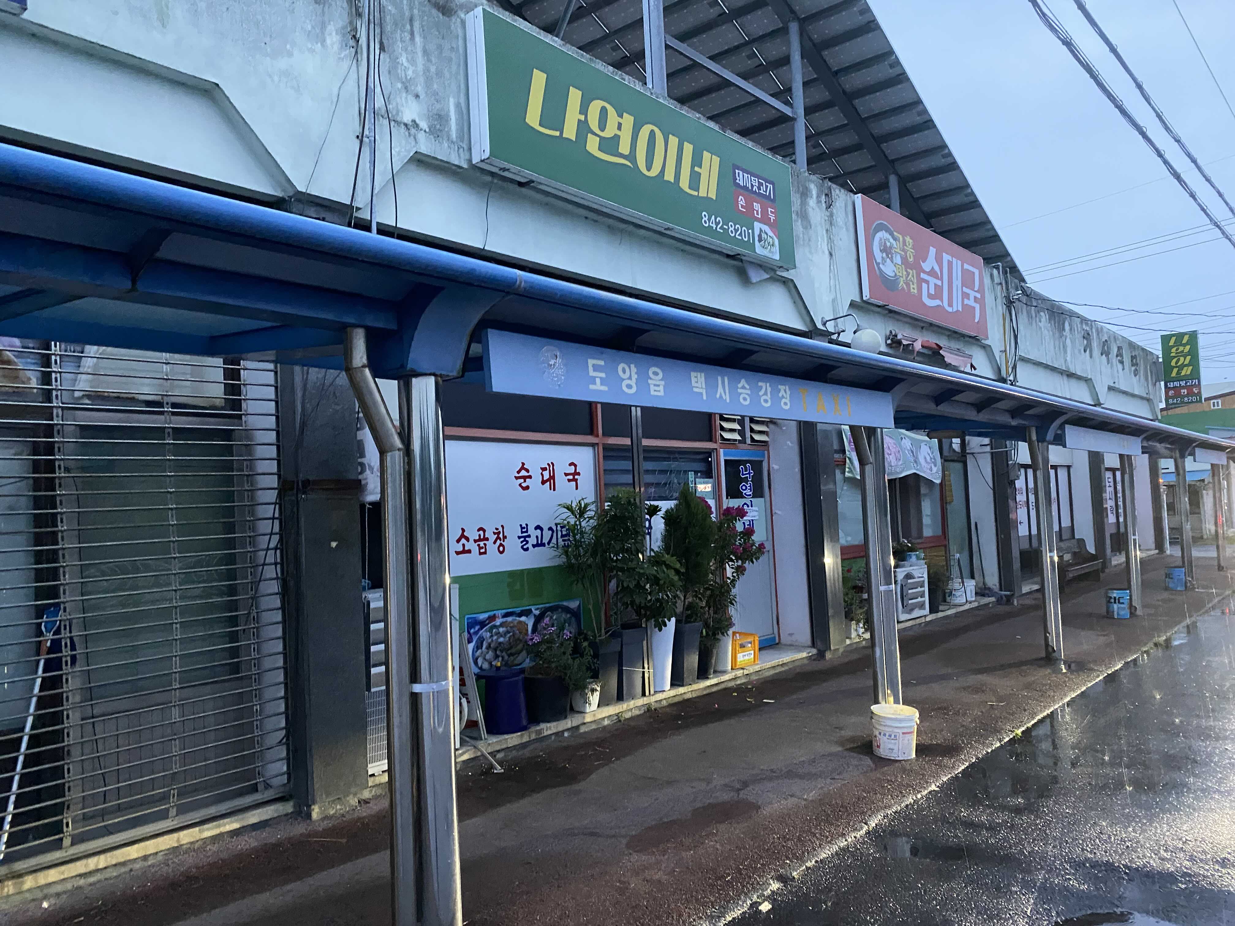 녹동버스공용정류장 앞에는 이렇게 도양읍 택시승강장이 있어서 버스를 내려서 택시를 이용하실 수도 있어요. 터미널 앞엔 순대국가게 나연이네 음식점 기사식당 등 다양한 식당들이 위치하고 있어서 식사도 가능하고 아침식사는 새벽 6시부터 운영하는곳도 있으니깐 근처에서 식사도 가능해요.
