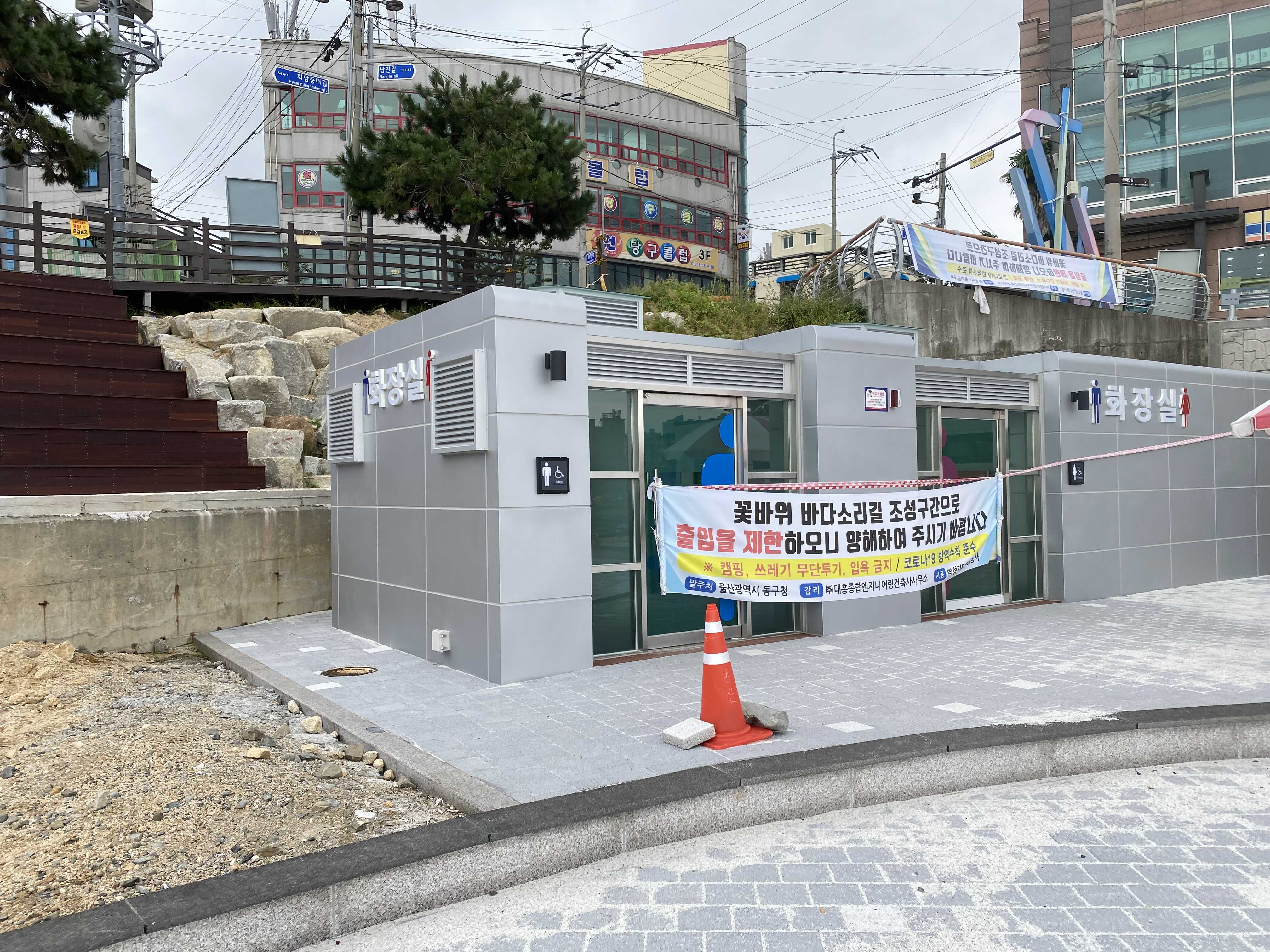 캠핑장에 이용할 수 있는 화장실은 이미 완공이 되어 있는데 지금은 시범운영이 끝나서 사용은 안되고 있더라구요.