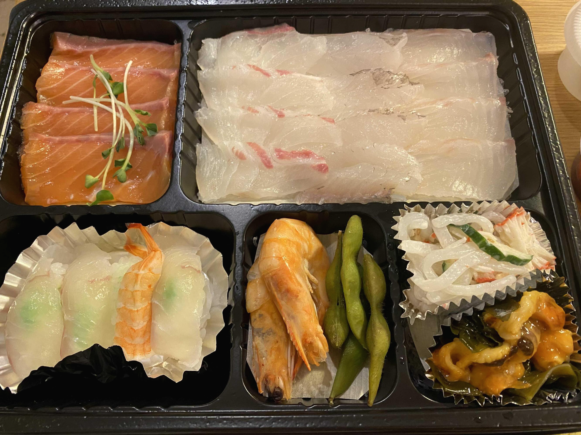 참돔,우럭,광어 이렇게 3종류 같았고 거기에 연어회, 초밥 멍게 새우도 있더라구요. 출장이나 혼술, 혼밥 메뉴로도 충분하고 호텔에서 저녁먹고 술안주로 진짜 적당하더라구요. 요즘은 진짜 포장 구성도 좋고 제주도라서 모듬회 포장 구성이 더 좋은 거 같아요.