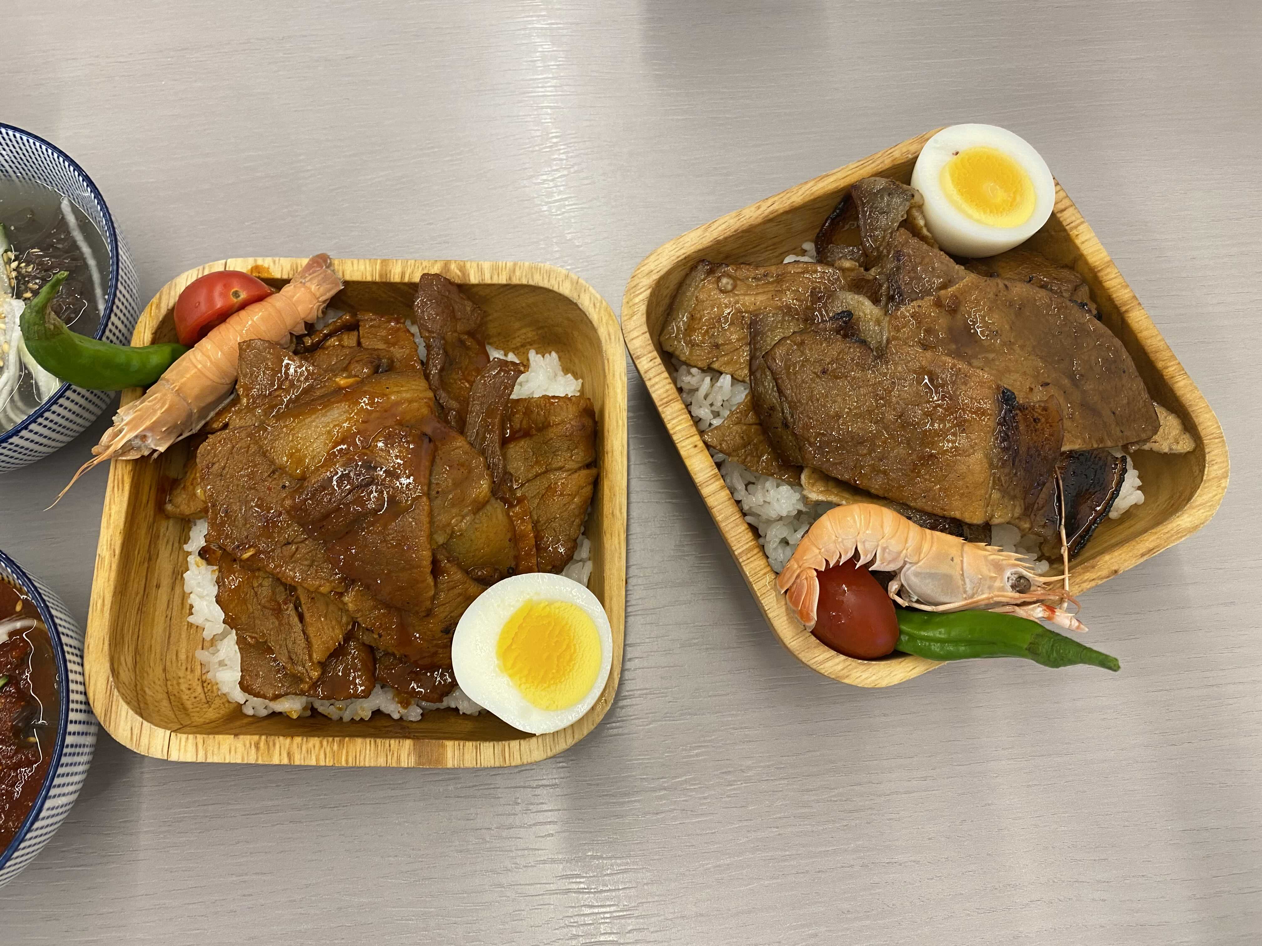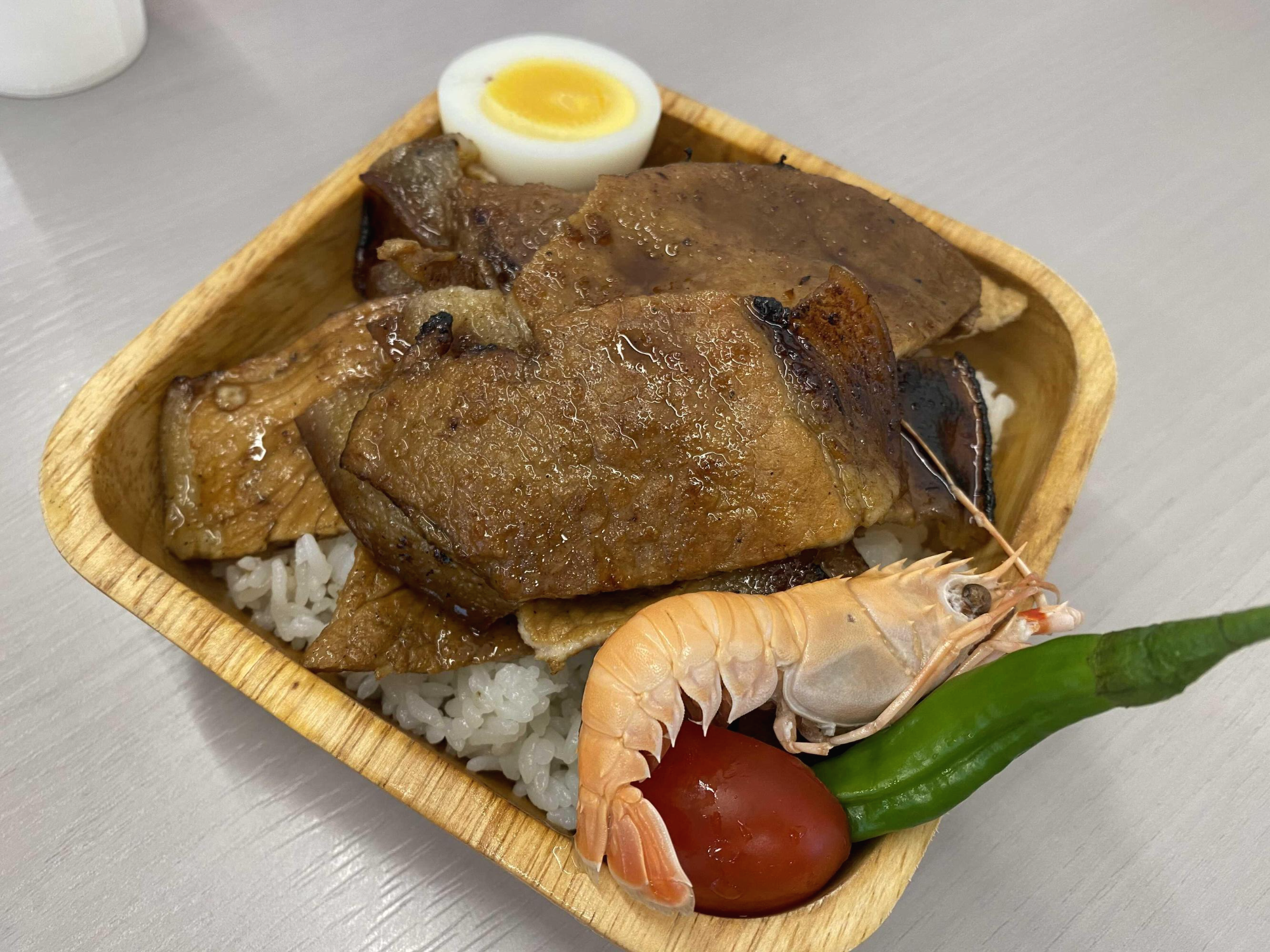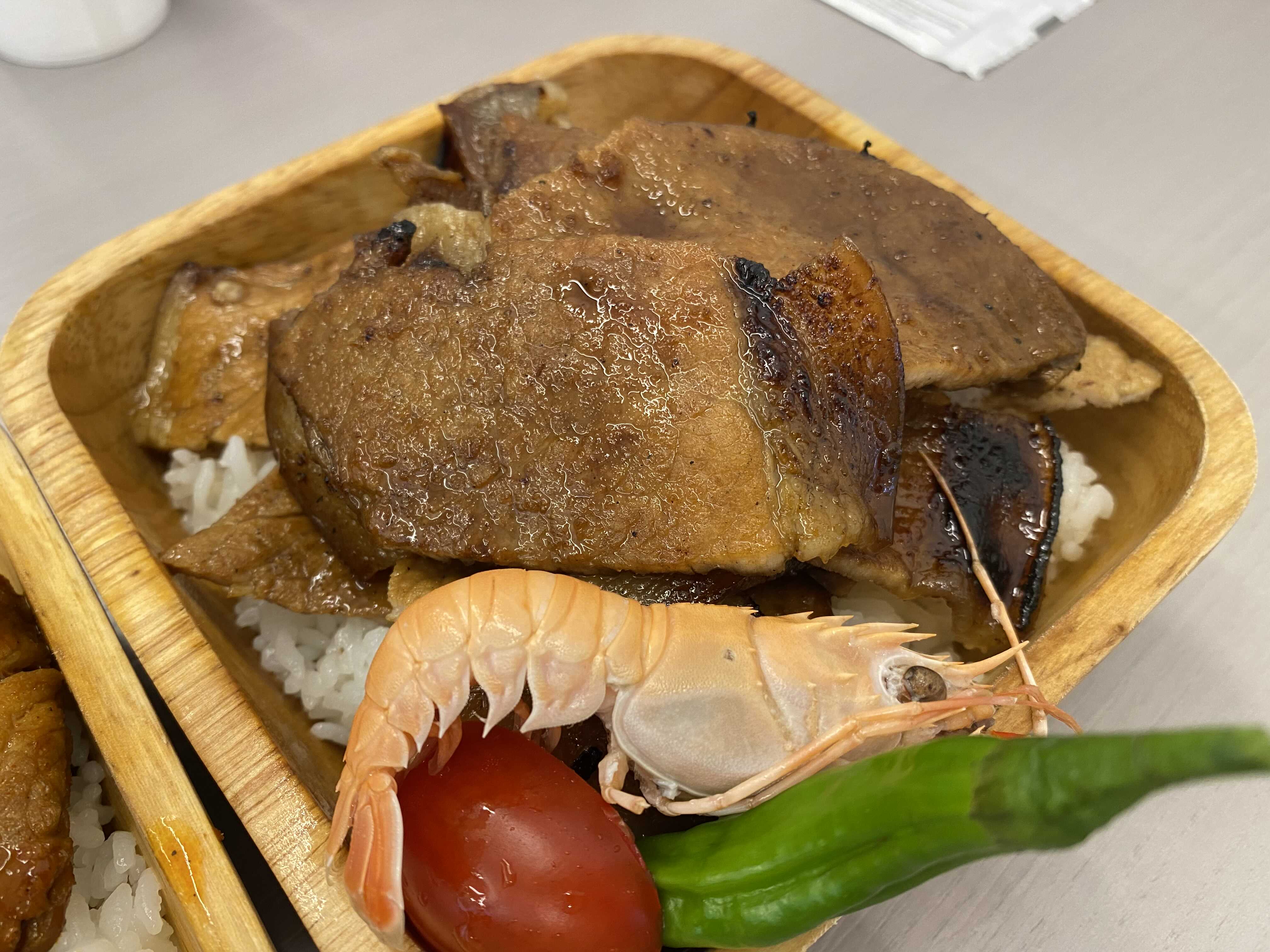 내용물은 진짜 별거 없이 딱새우, 방울토마토 반쪽, 고추, 삶은계란반쪽 그리고 밑에 흰밥 이게 끝이예요 ㅋㅋ