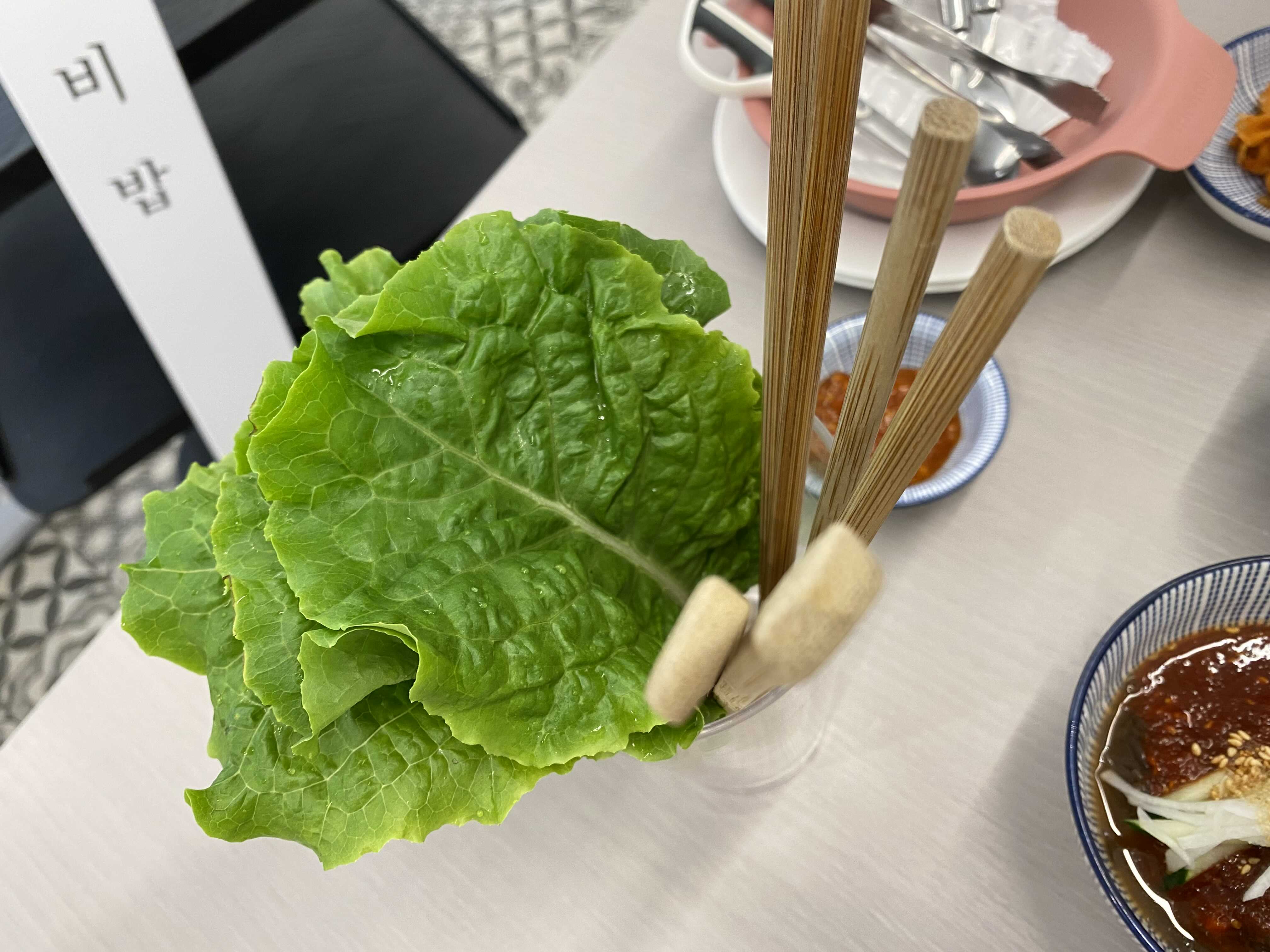 갈비밥에 쌈에 싸서 먹으니깐 기가 막히더라구요.