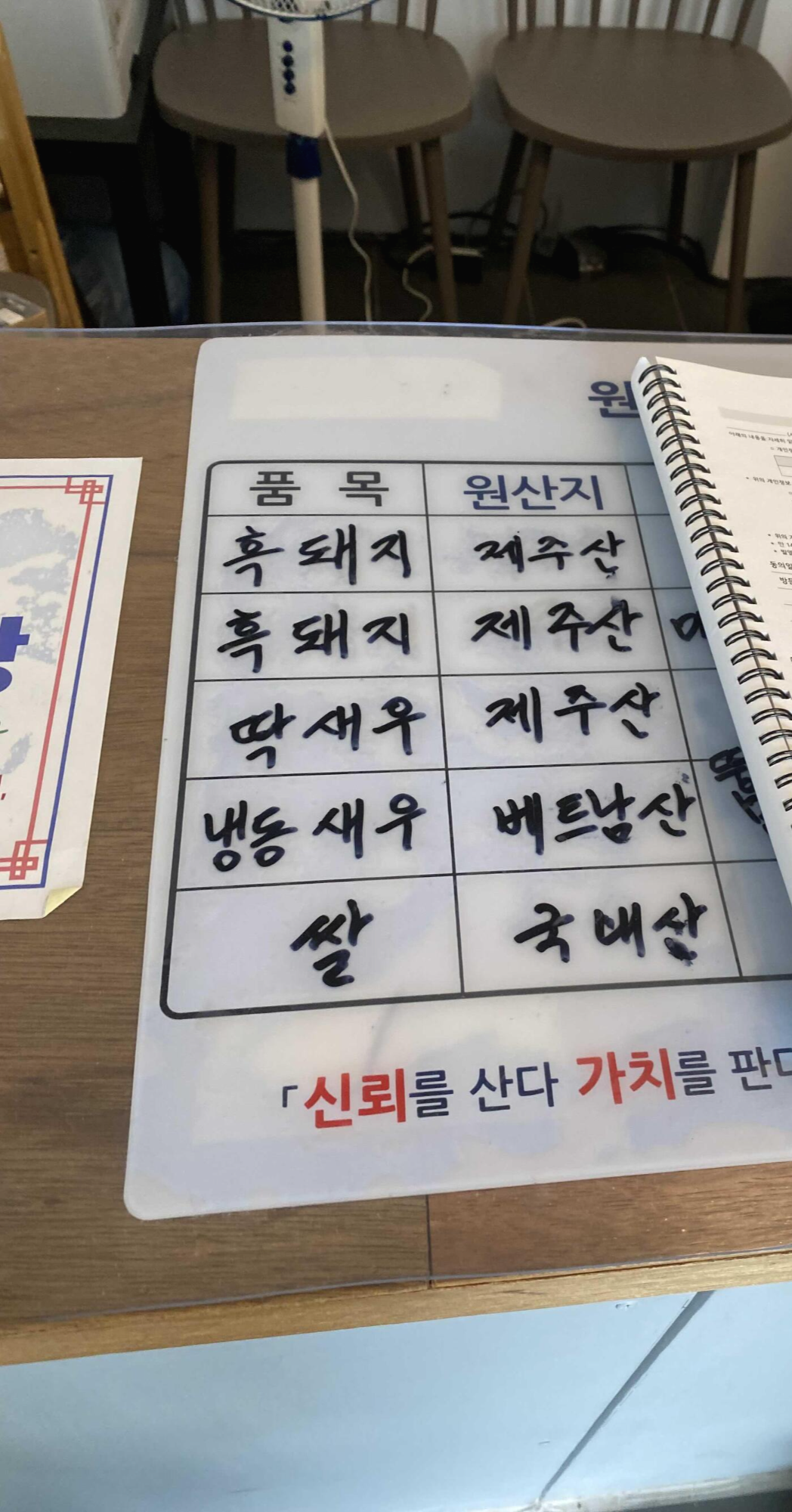 흑돼지 제주산. 딱새우 제주산. 냉동 새우 베트남산. 쌀 국내산 이렇게 표시 되어 있었어요.