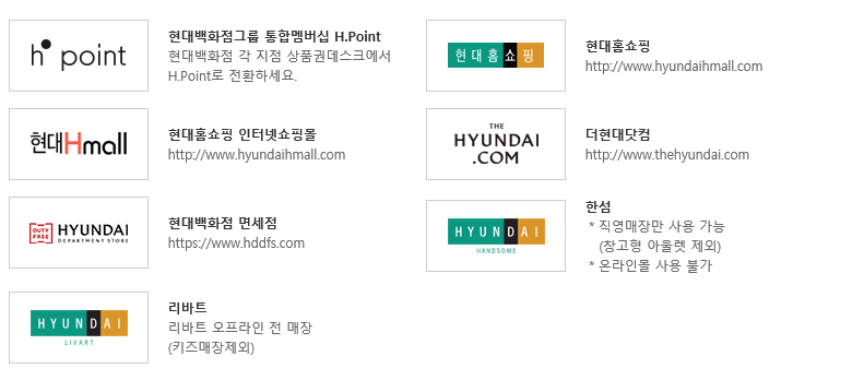 현대백화점그룹 통합멤버십 H.Point 현대백화점 각 지점 상품권데스크에서 H.Point로 전환 가능.