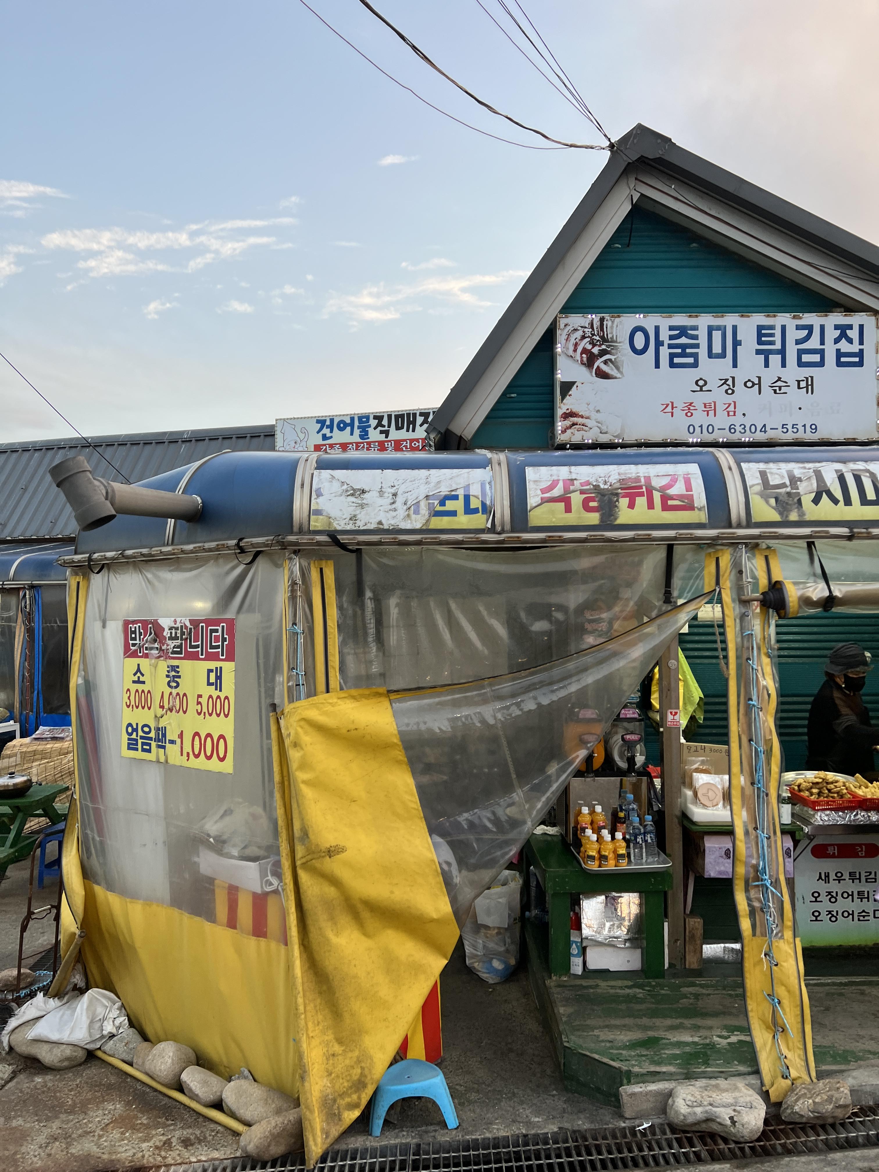 아줌마 튀김집이라고 해서 입구 앞에 각종튀김 오징어순대 파는 가게도 있으니깐 참고해주세요.