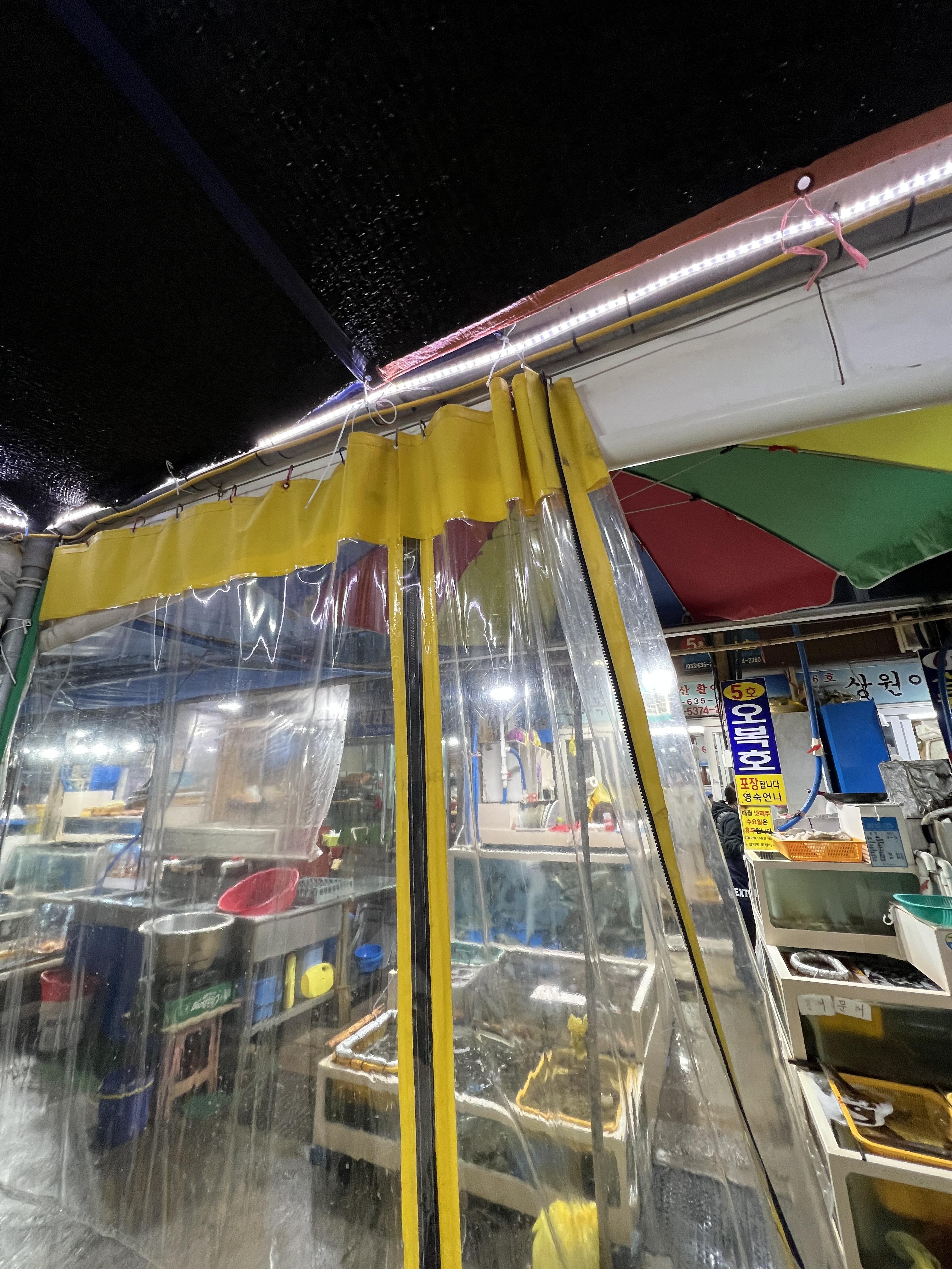 설악항 회센터 같은 경우에는 다양한 자연산 횟감이랑 항구앞에서 포장마차식으로 먹을 수 있는 분위기가 속초에서 최고지 않나 싶어요.