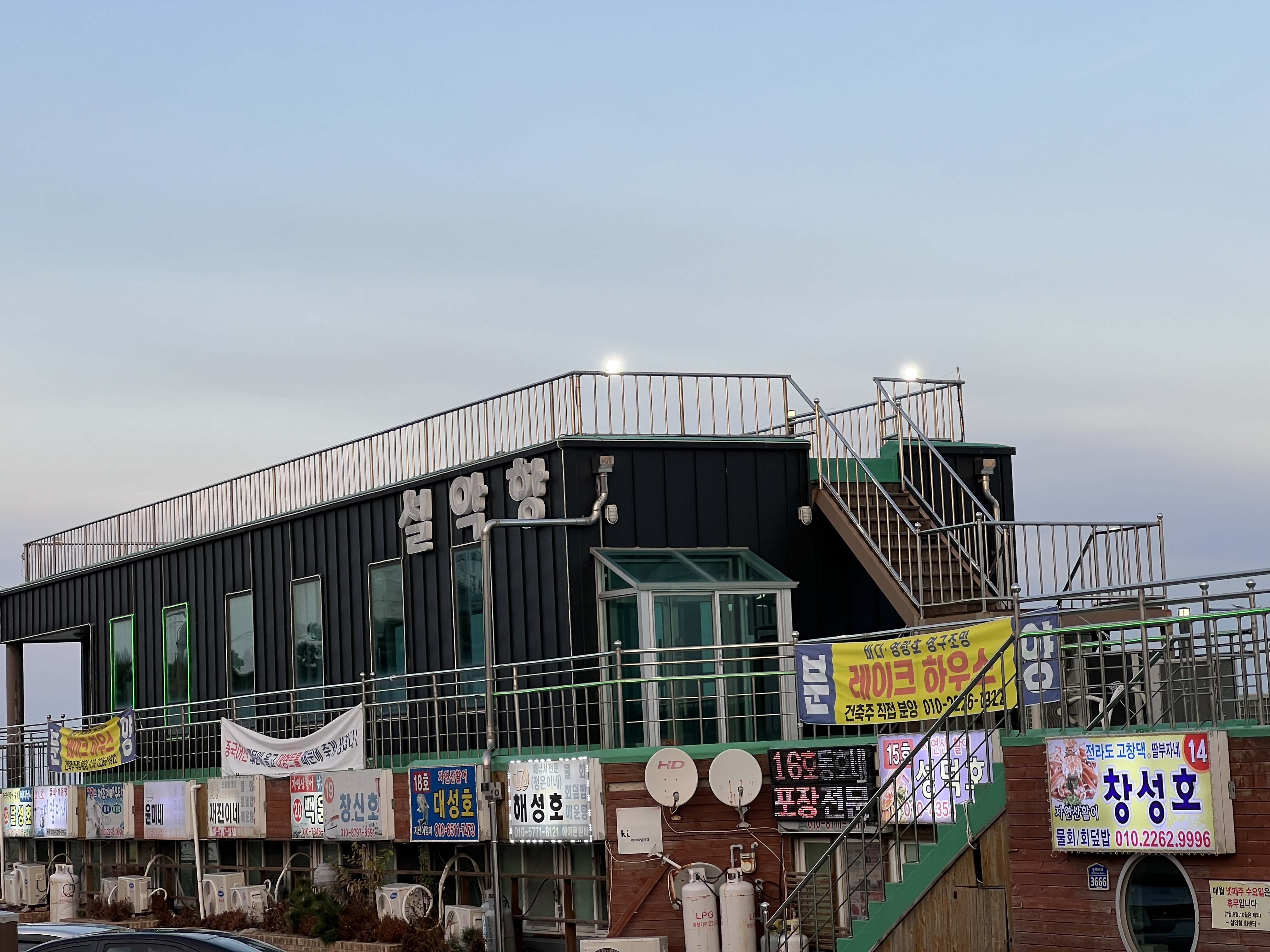 여러곳이 있지만 저기로 결정한 이유는 속초 중앙시장에서는 주차부터 해서 시간이 너무 오래 걸리고 동명항은 회값 따로 회뜨는값 따로 이렇게 하고 대포항은 안가본지 오래 됐고 장사항활어회센터를 가볼려다가 동선이 안맞아서 안가고 이렇게 고민을 하다가 결국엔 설악항 회센터로 고르게 된거예요.