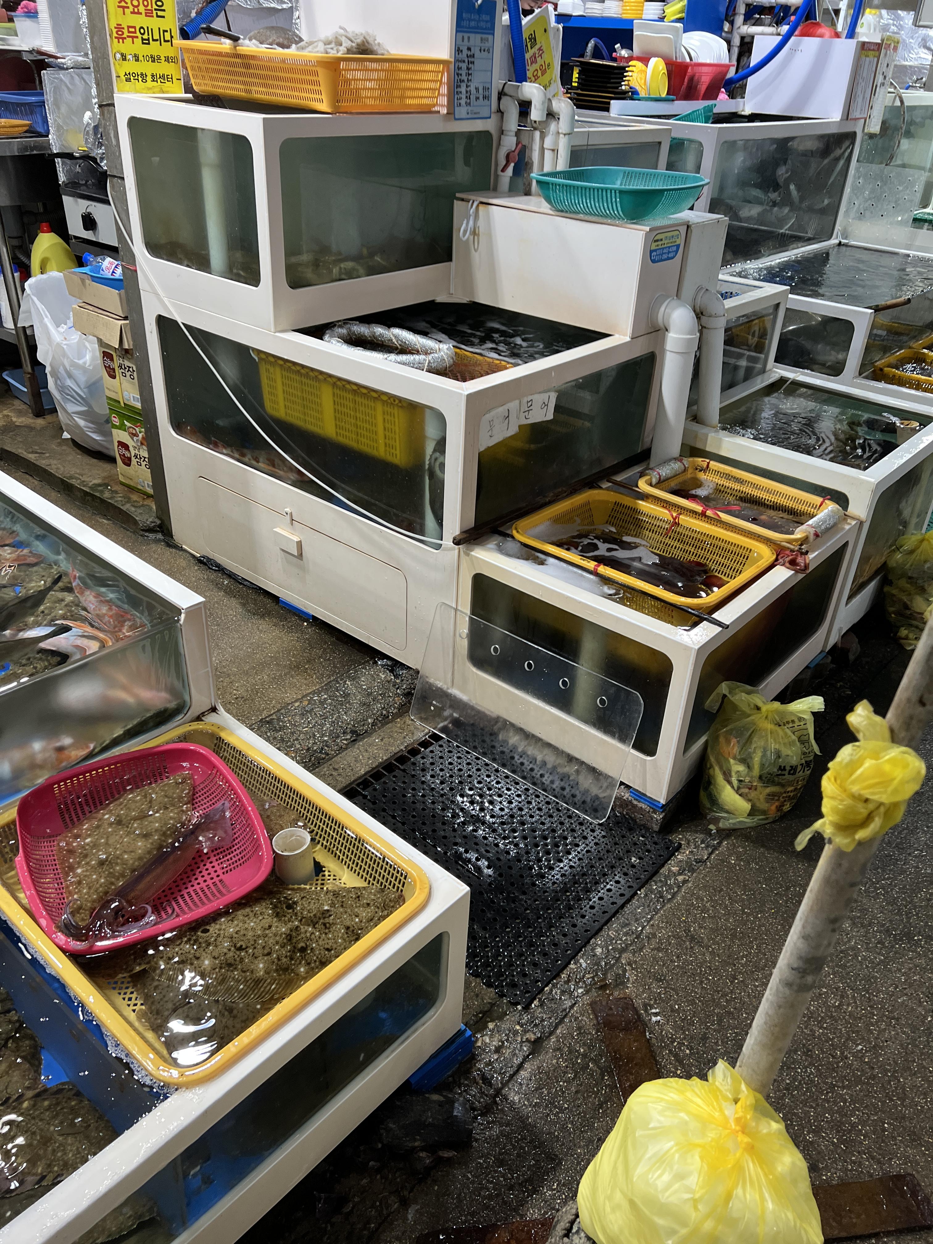 저는 이번에 쥐치회나 전복치회를 먹을려고 방문을 했고 몇군데 집에서 흥정을 해보니깐 수족관에 있는 어종에 따라서 있는 곳도 있고 없는곳도 있더라구요.