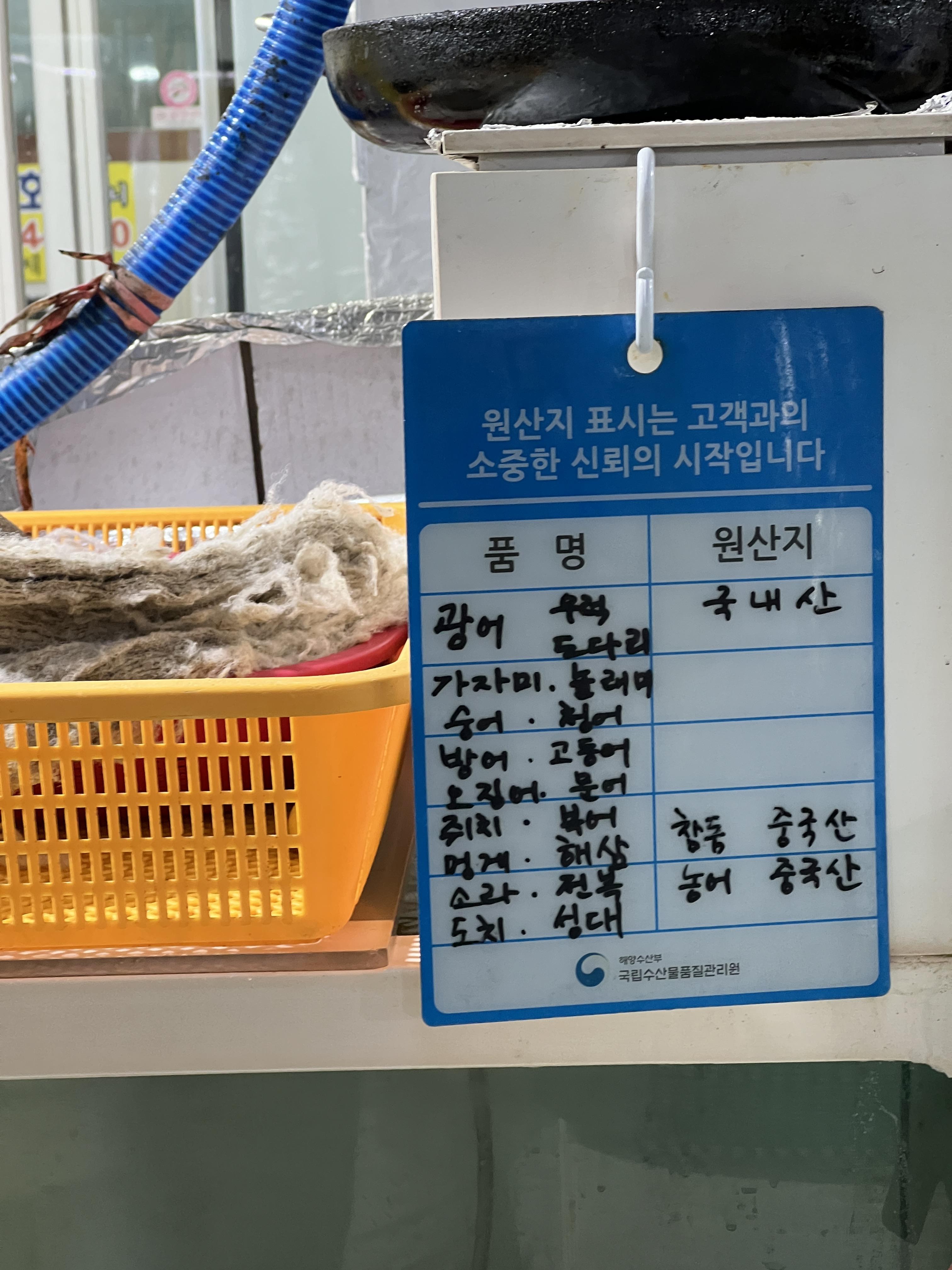 횟집을 일단 가면 원산지 표시를 먼저 보세요.