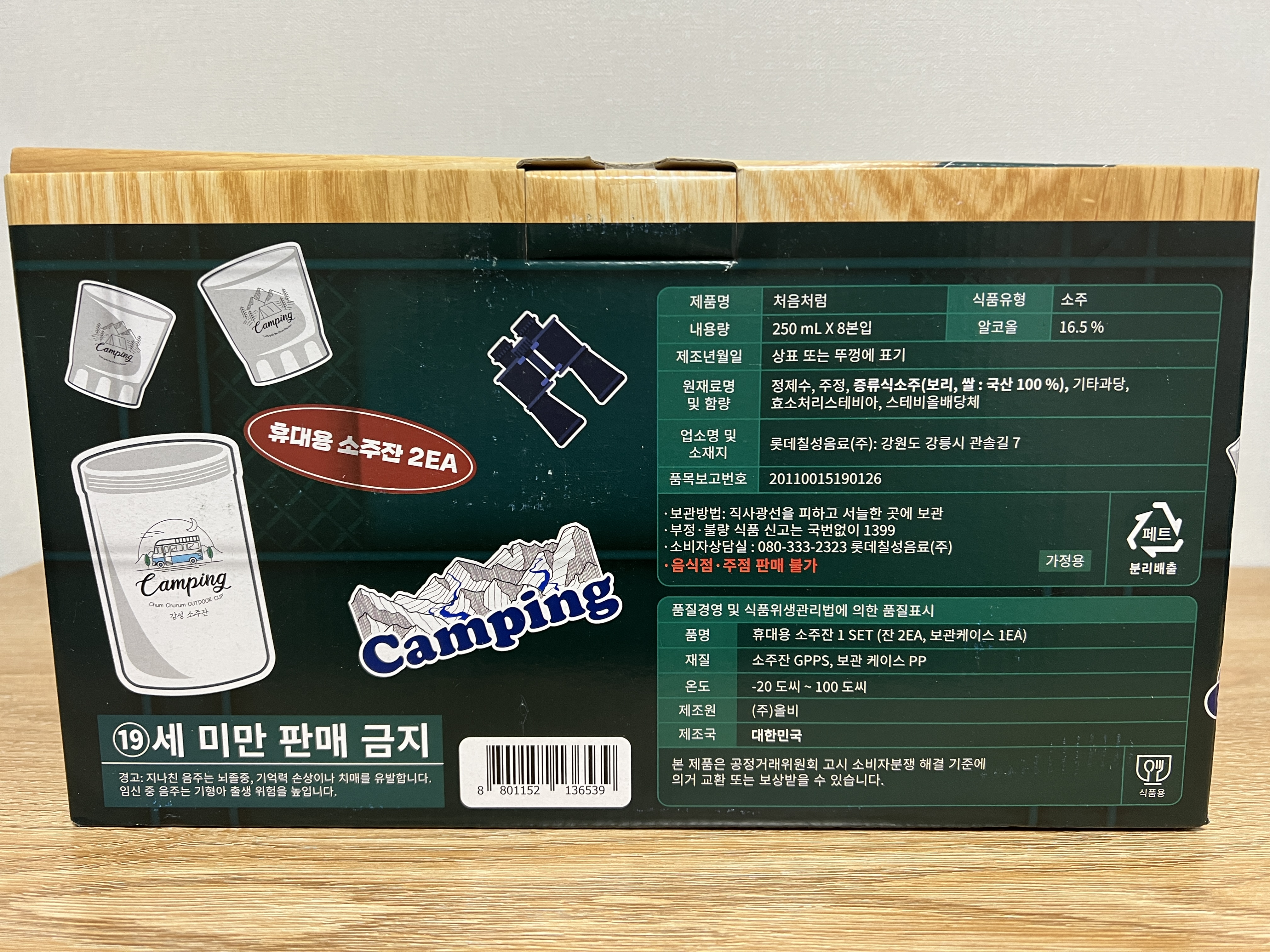 오늘은 마트에 갔다가 술코너에서 어떤게 나왔나 구경을 하다가 처음처럼 소주 캠핑용 기획팩 플라스틱 소주잔 구입 패키지가 있길래 어차피 소주를 사야되니깐 세트로 해서 들어 있길래 보자마자 또 구입을 했어요.