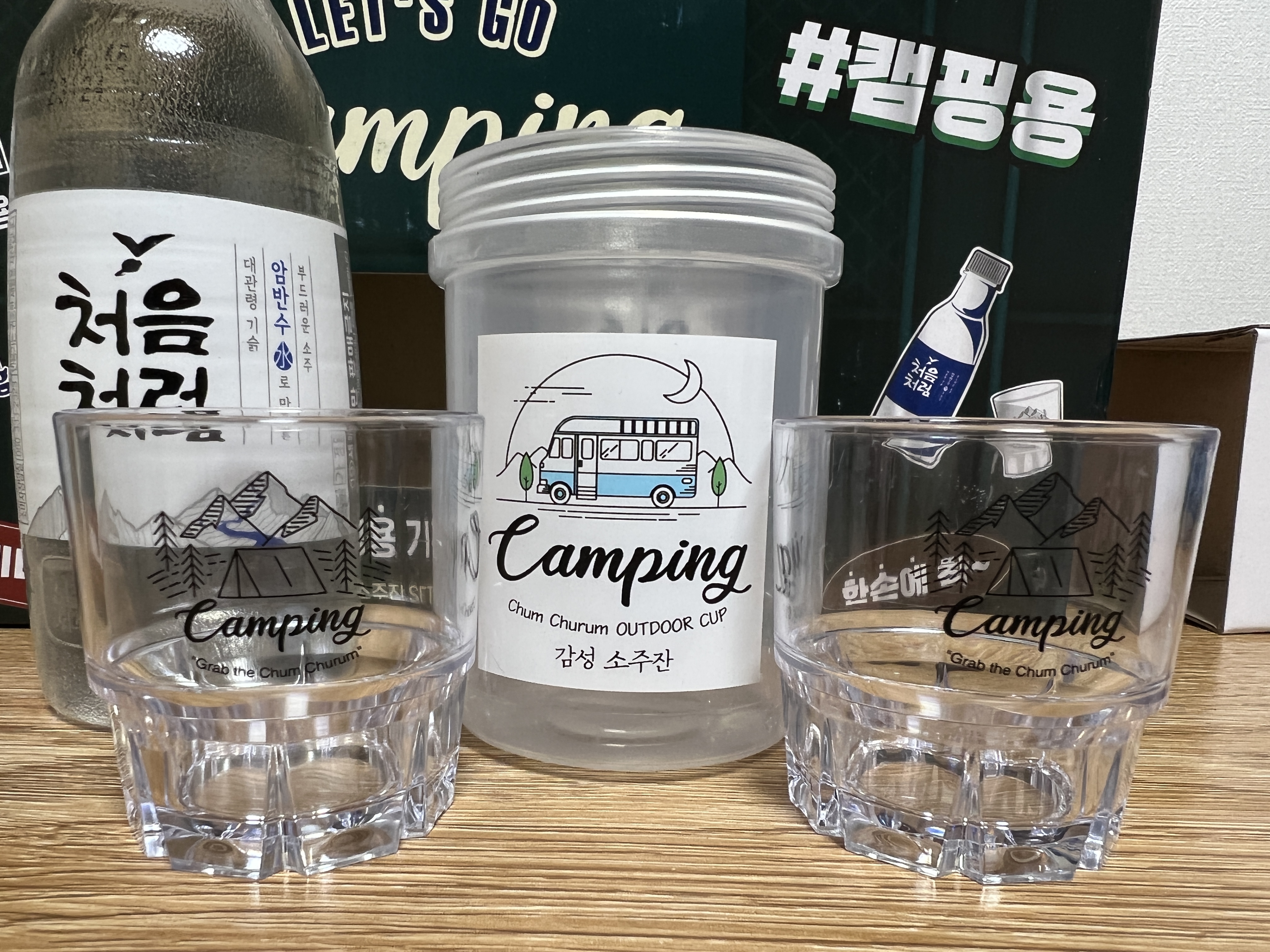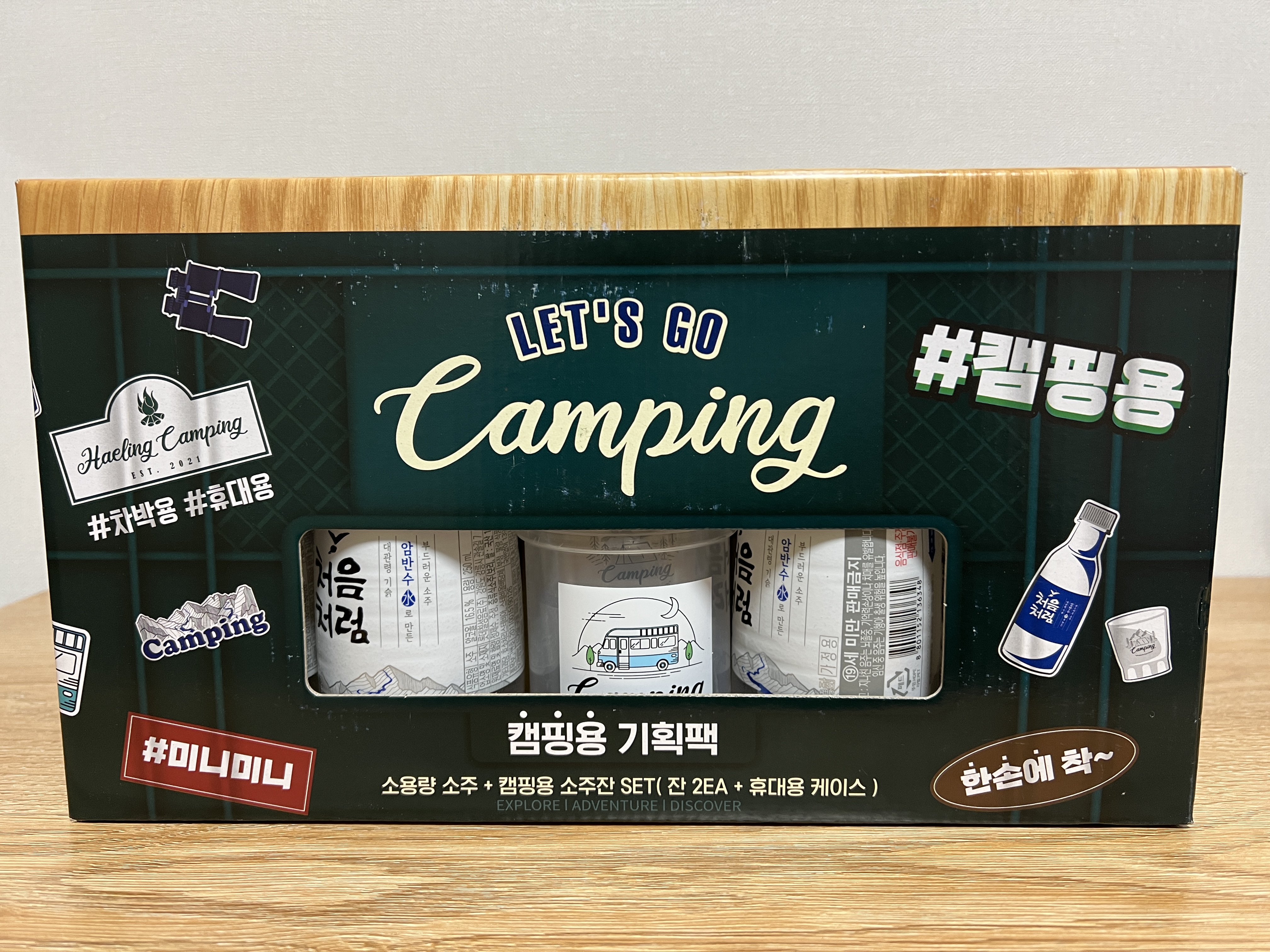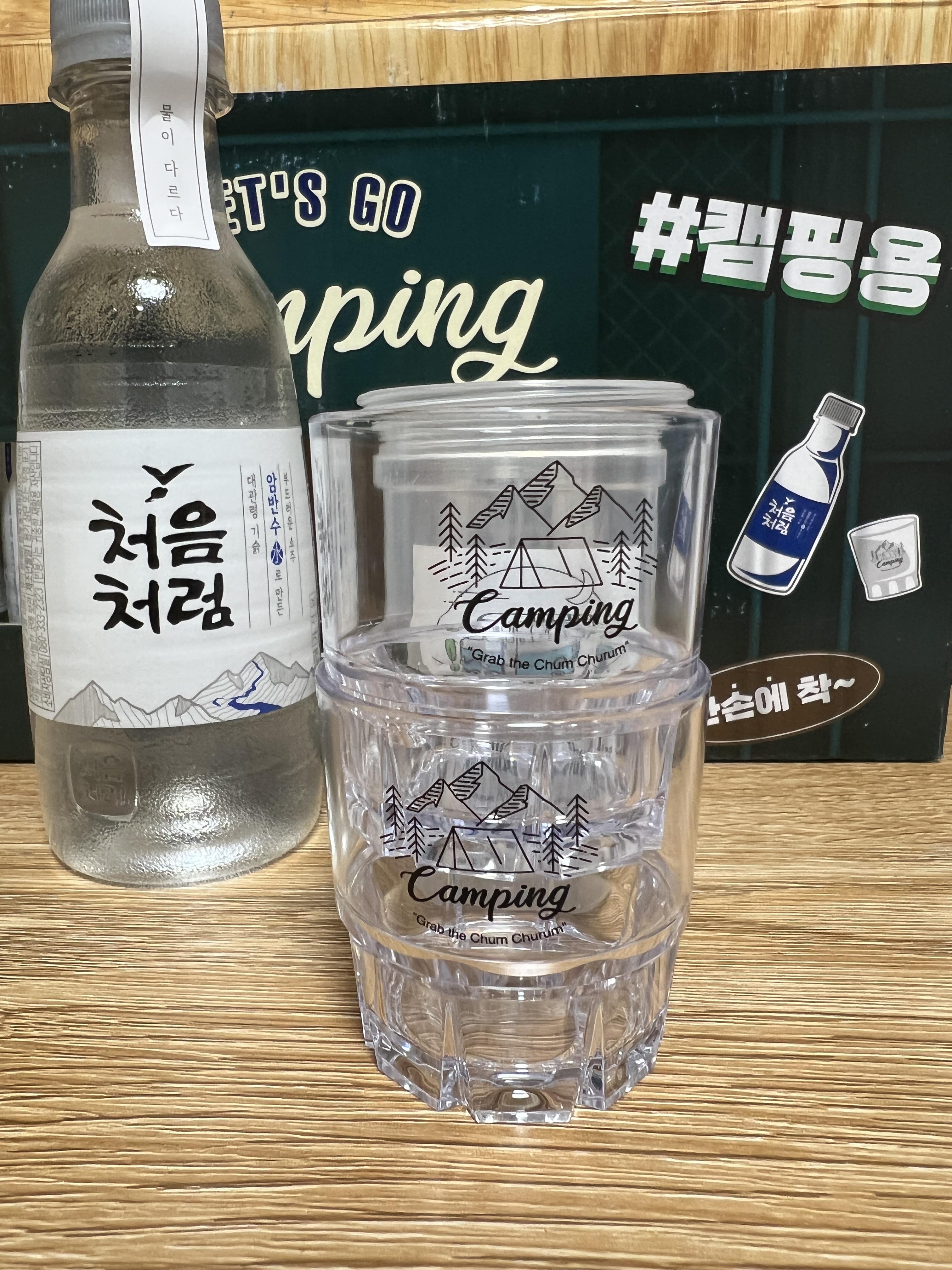 이걸 왜 샀지? 라는 갑자기 생각이 들더라구요 ㅋㅋ 소주잔에 텐트랑 산이랑 캠핑 글씨랑 되어 있어서 요거만 좀 달라요.