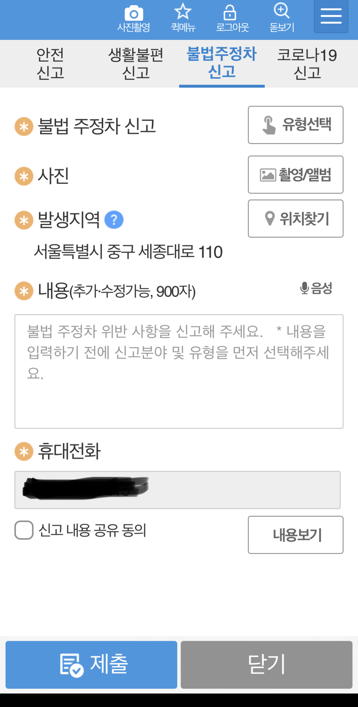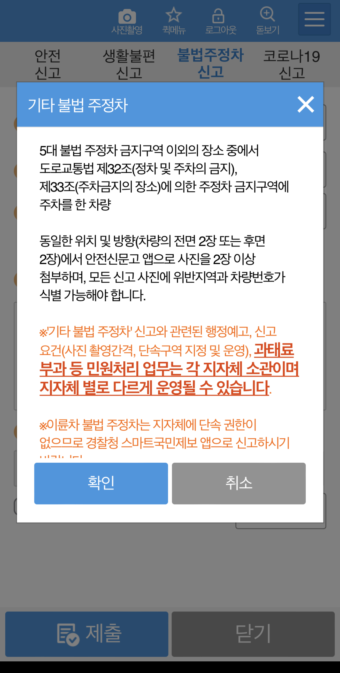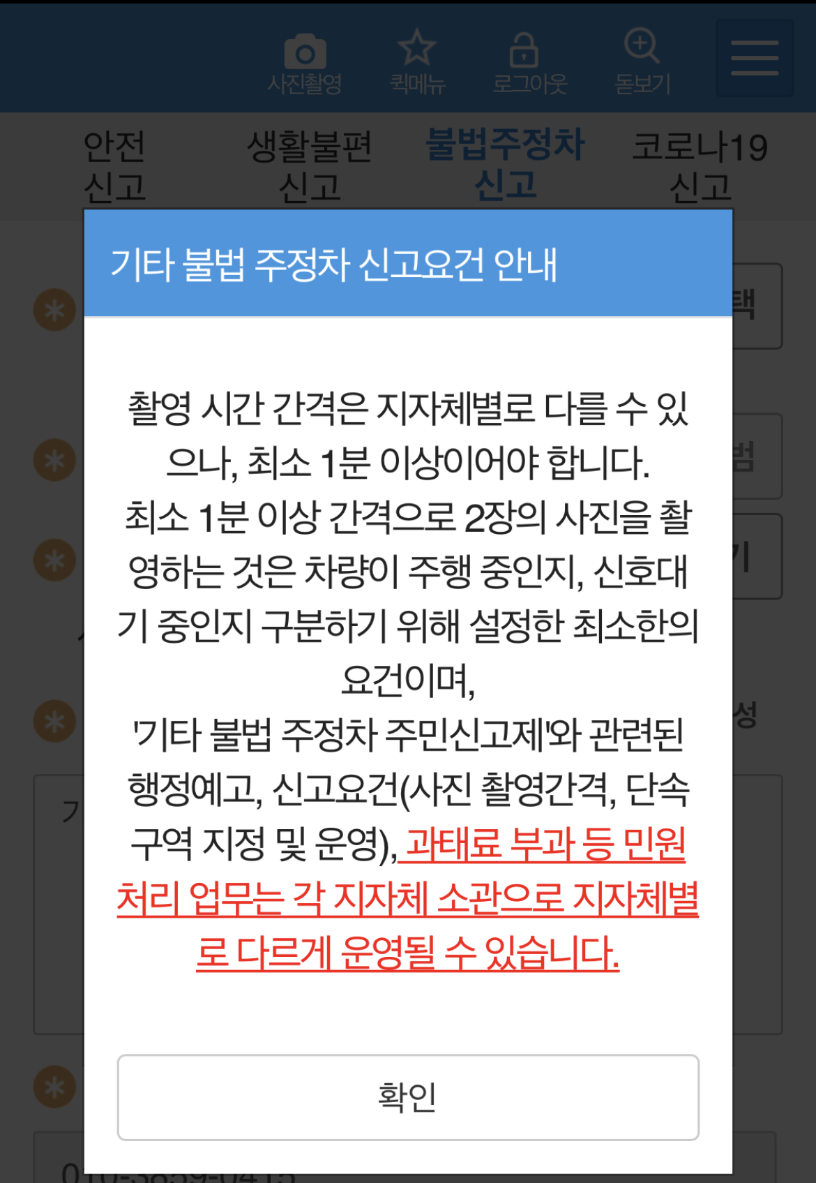 이미 그전에 장애인 주차구역 신고나 주정차 위반 관련으로 신고 해보신분들은 아주 쉬울거예요.