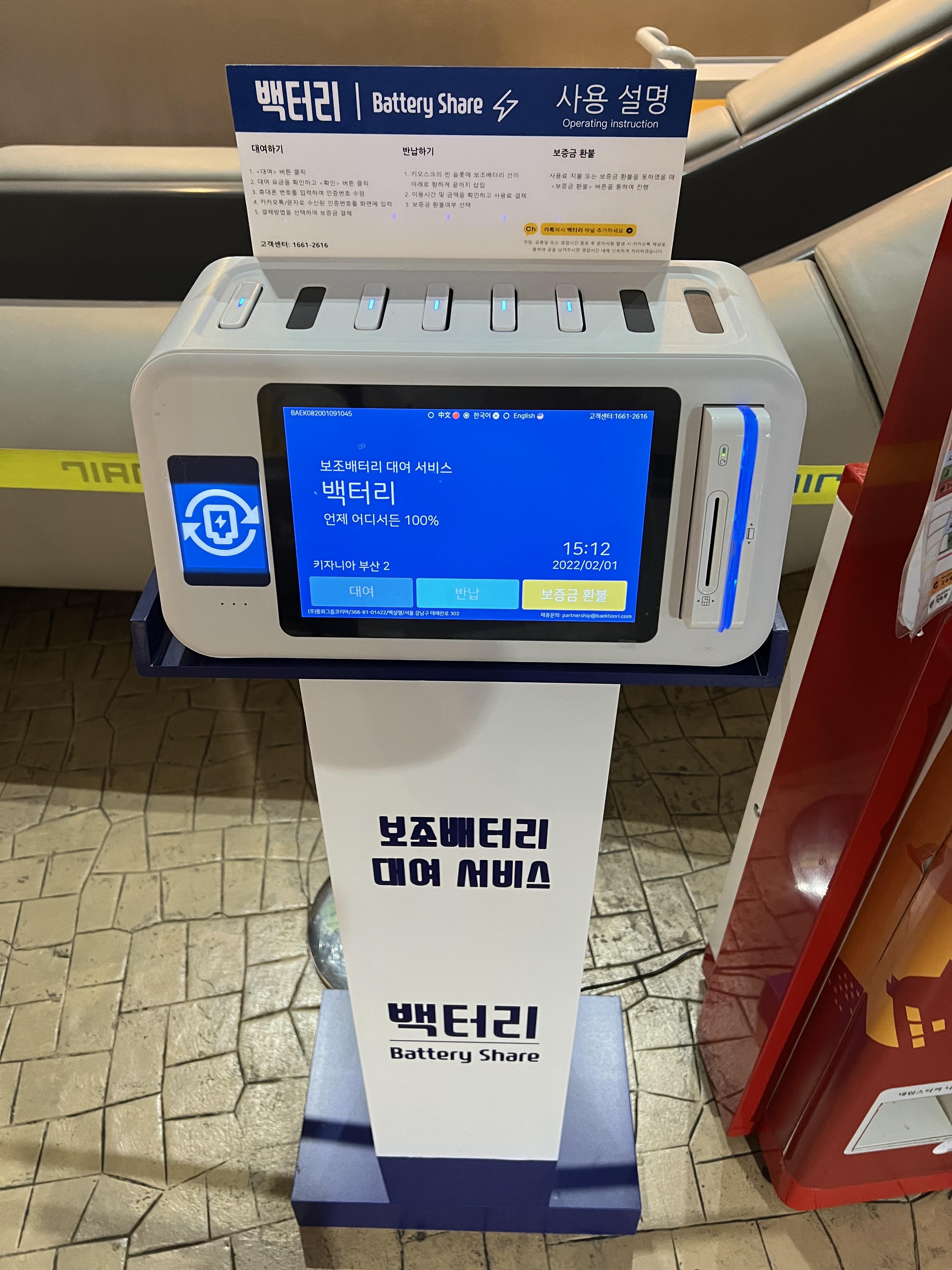 오늘은 부산에 있는 키자니아에서 핸드폰 배터리가 없을때 유용하게 사용할 수 있는데 백터리 이용 후기를 작성해볼려고 해요. 아이들과 함께 가는 놀이동산이나 체험 프로그램에 방문 했는데 배터리는 없고 사진은 찍어야 되는 경우 있으시죠? 이럴때 꼭 필요한게 바로 보조배터리인데요. 들고 다니면 좋지만 가끔 까먹고 못챙겼을때 백터리 키오스크에서 보조배터리는 대여를 할 수 있더라구요.