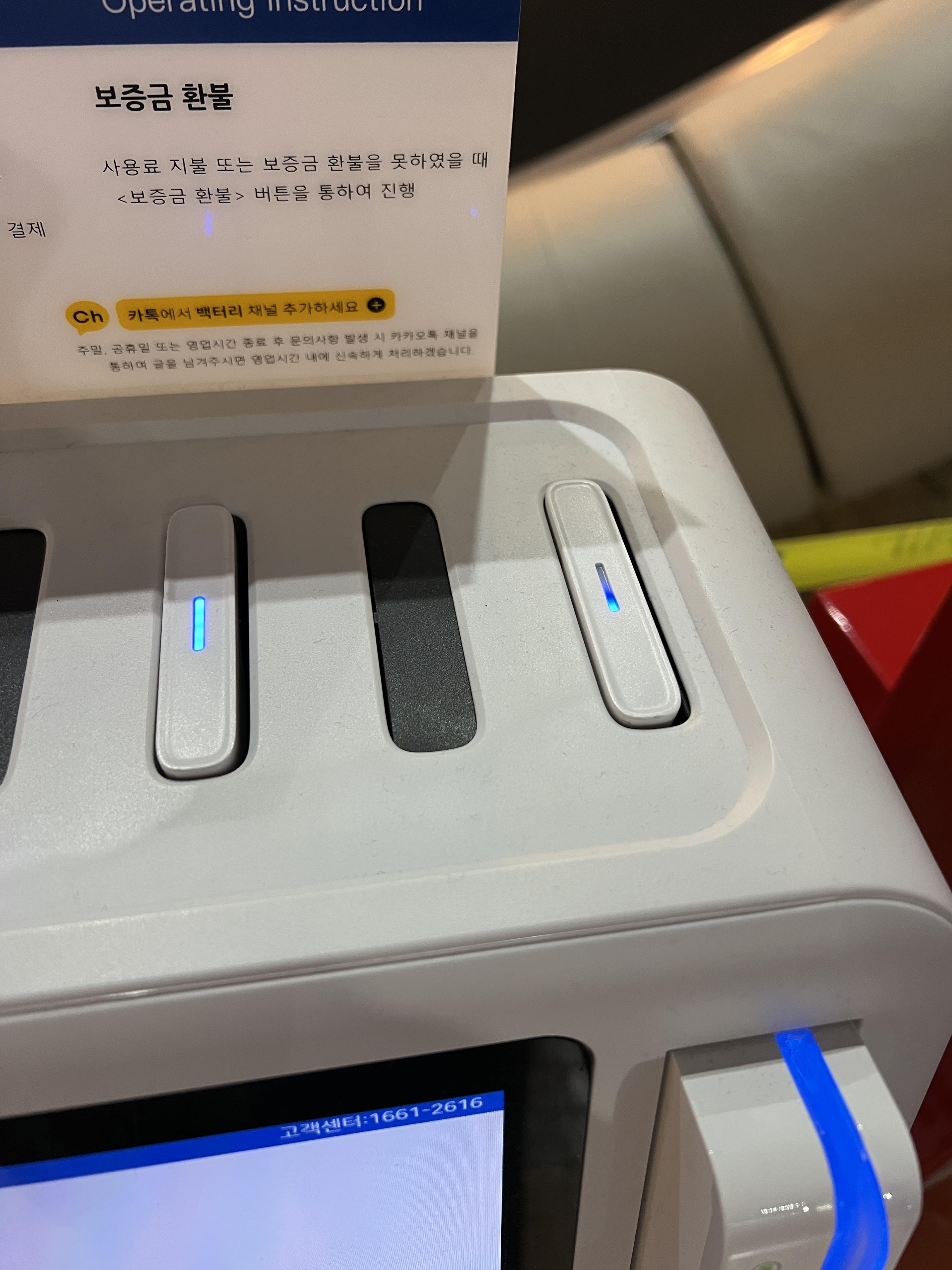 신한은행 건너편에도 이렇게 백터리 기계가 있고 엘지U플러스 옆에 있고 롯데리아 가는길에도 있어요. 제가 본건 일단 4개 정도 되는데 더 있을 수도 있을거 같더라구요. 처음에 한 곳 밖에 없는줄 알고 다 빌려 갔길래 좌절 했는데 돌아다니다 보니깐 여러군데 있더라구요.