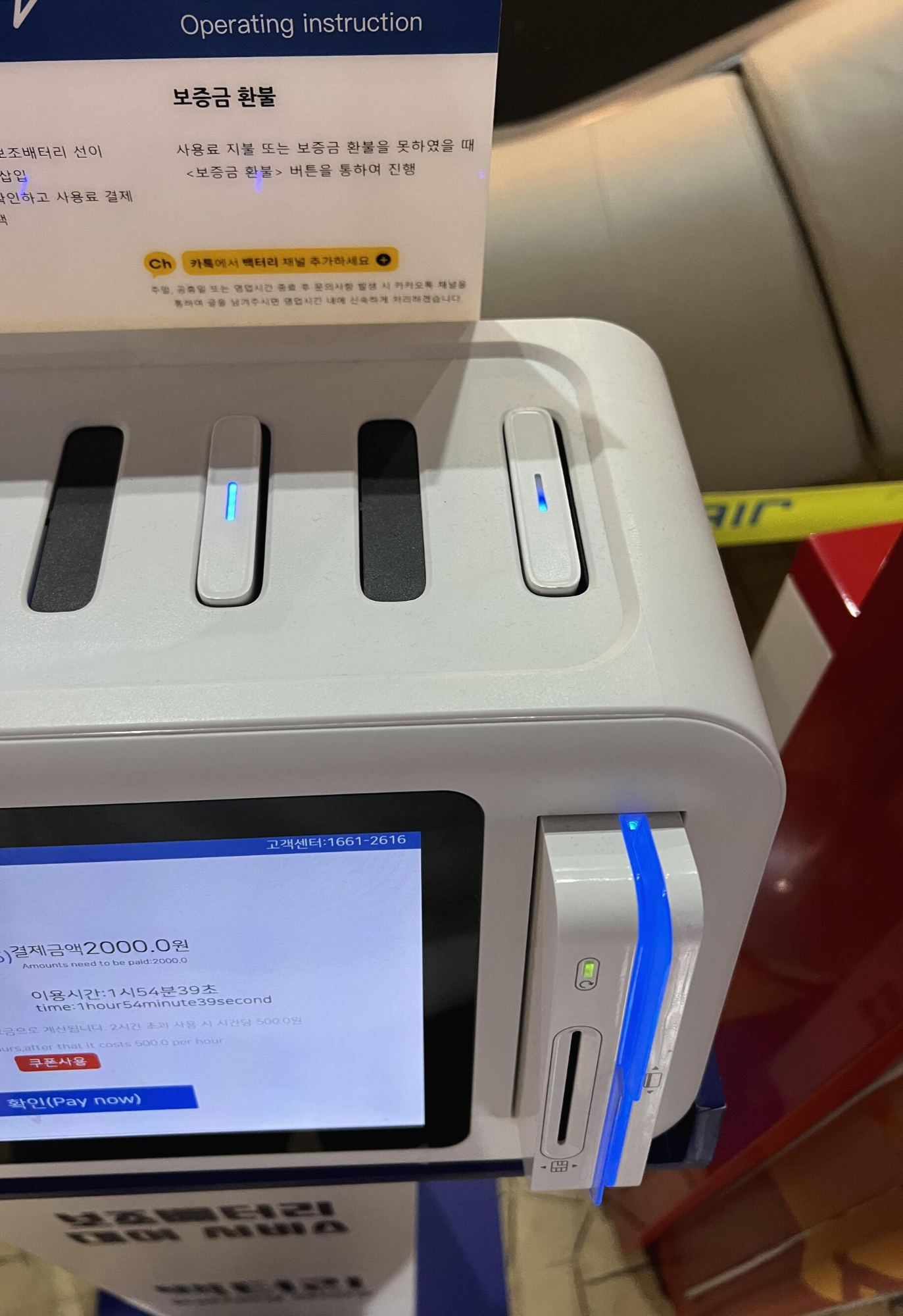 결제를 하고 나면 이렇게 보조배터리 중에 1개가 위로 나와요 ㅋㅋㅋ
