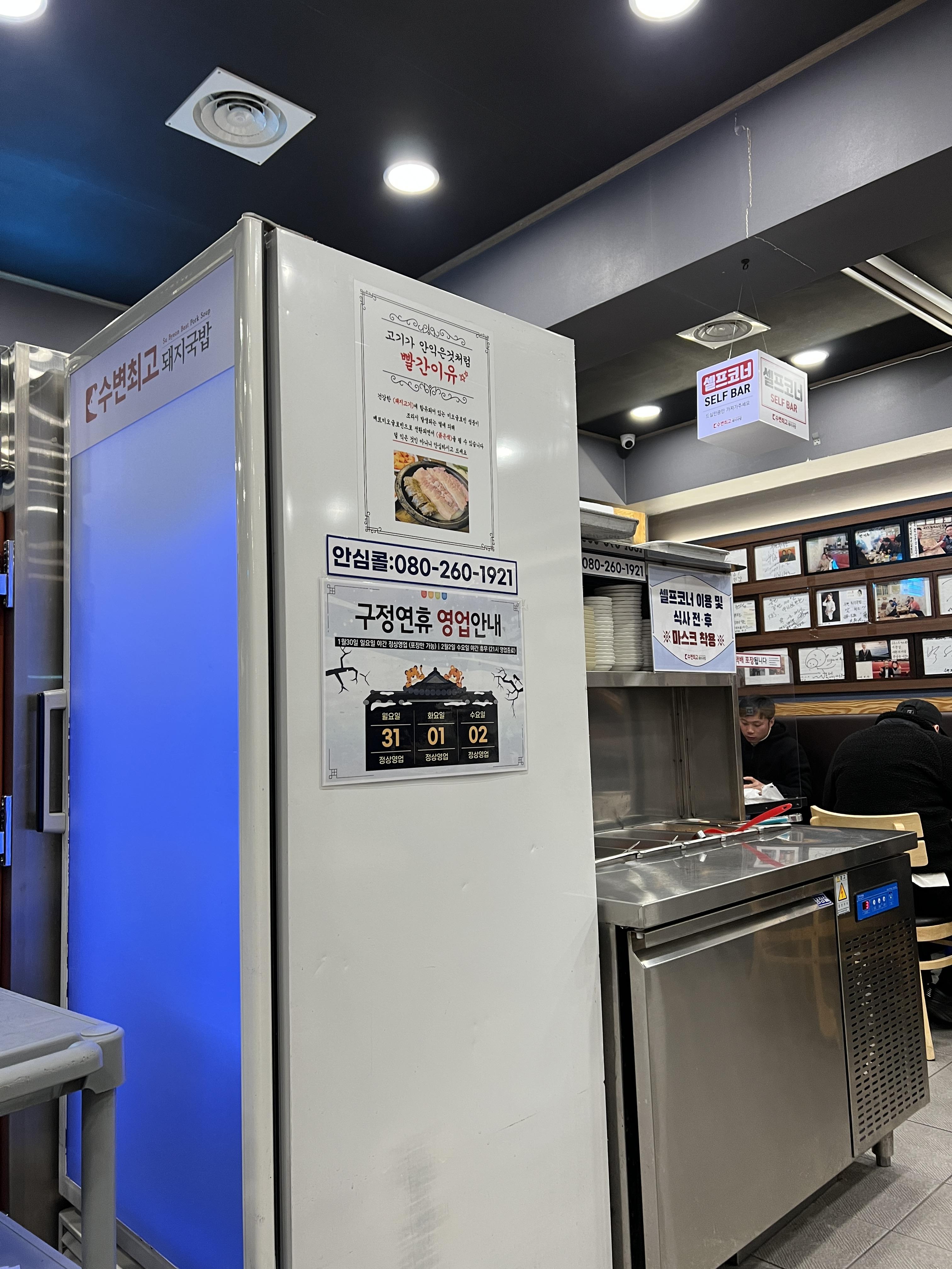 중간에 셀프코너가 있어서 반찬이랑 다른 부분도 눈치 안보고 가져다가 먹을 수 있게 해놨더라구요.