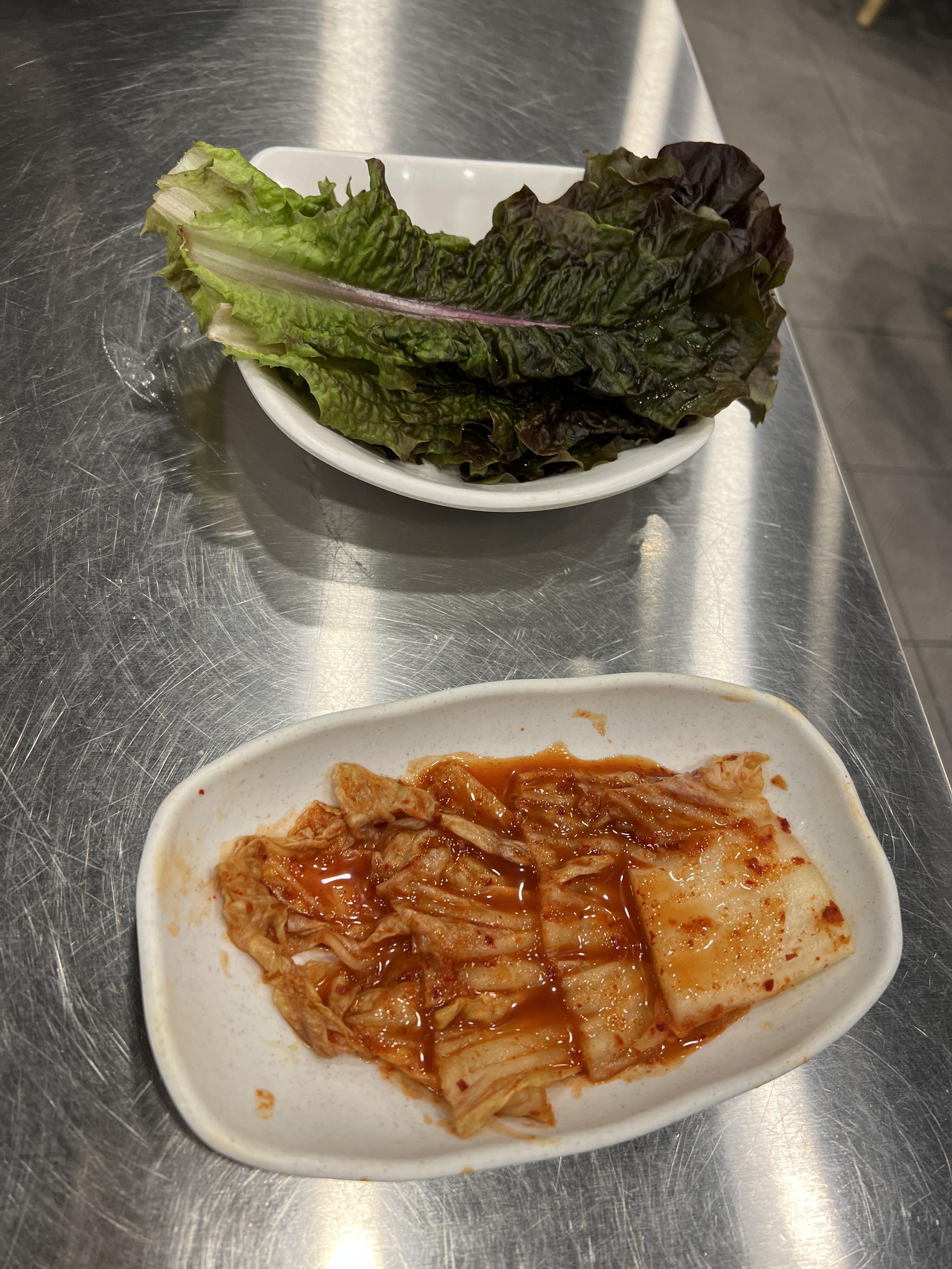 수육을 시키면 이렇게 수육김치랑 상추를 추가로 더 줘요.