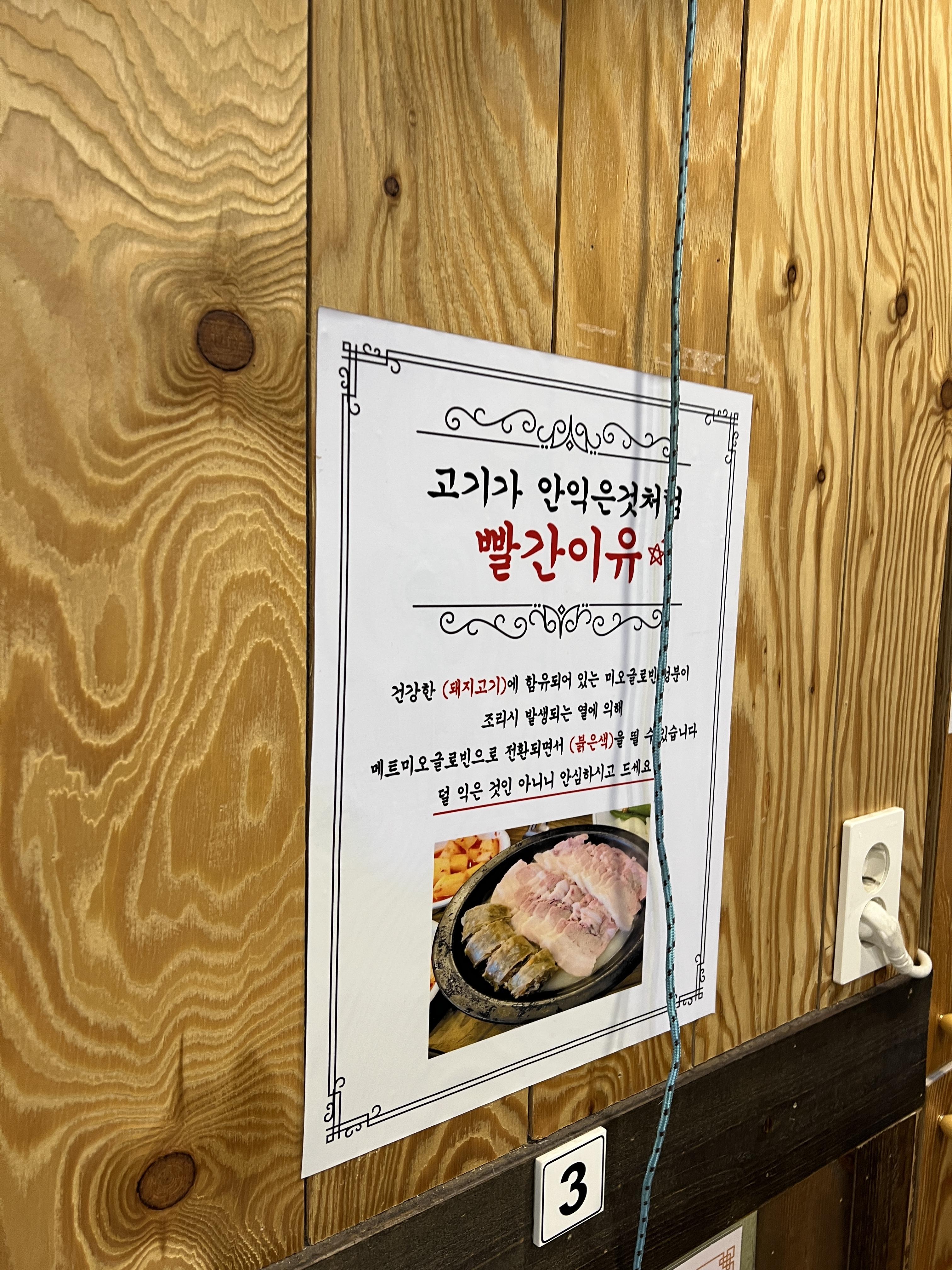 그리고 고기가 안익은것처럼 빨간이유에 대한 설명을 해놨어요.