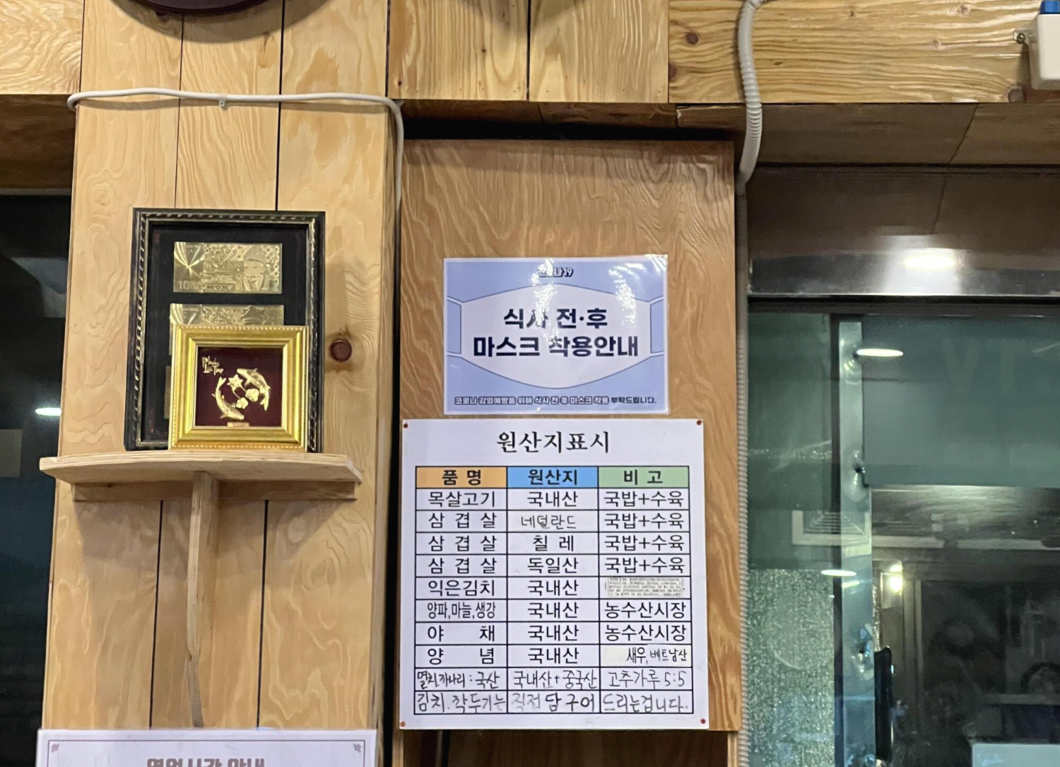 목살고기 국내산, 삼겹살 네덜란드 칠레, 독일산 (3가지를 쓰더라구요?)