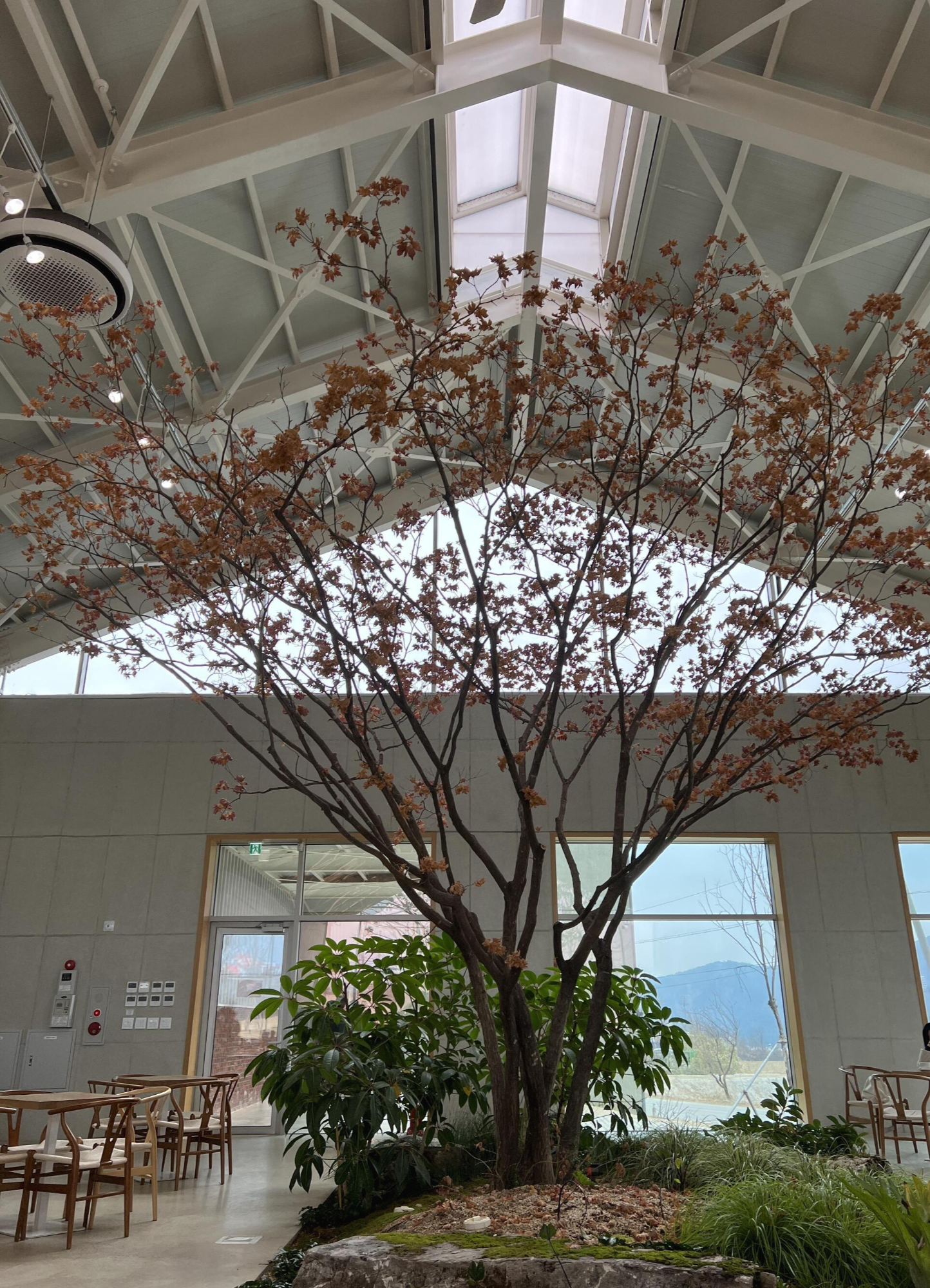 이 나무가 시드누아 속초점에 인스타 사진 포인트더라구요. 뒤에는 설악산이 보이고 나무는 계절마다 색깔이 변한다고 하더라구요. 실내에 있고 바람이 안불어서 단풍이 그대로 매달려 있는데 신기하더라구요.