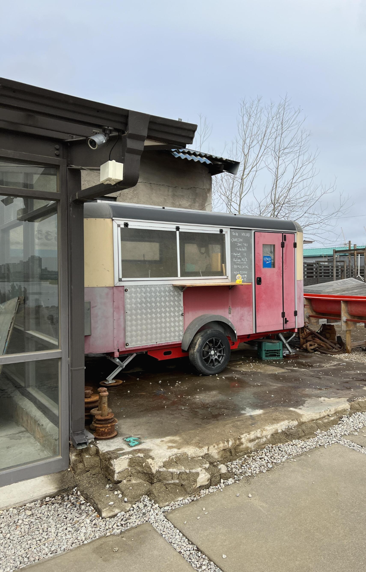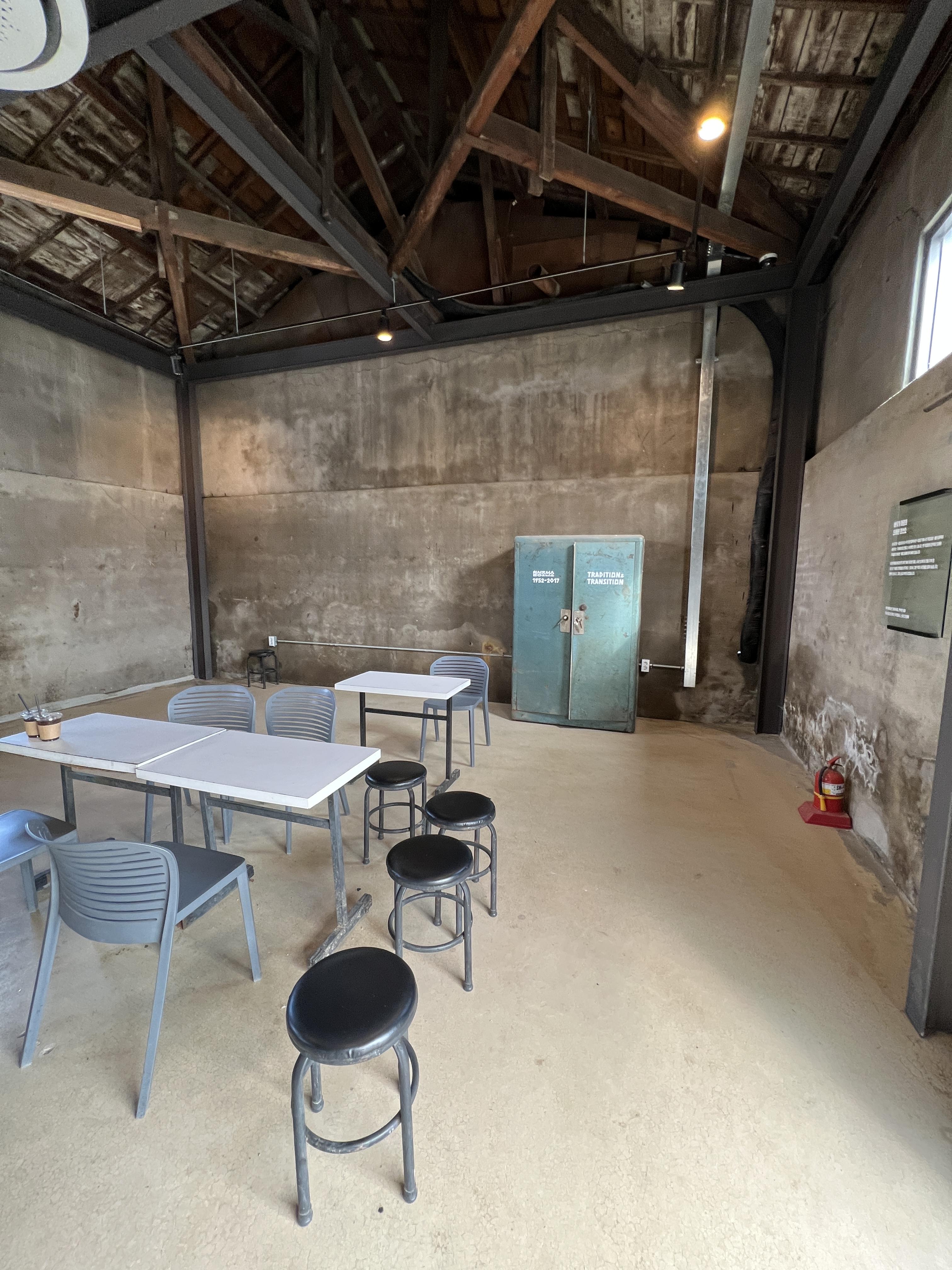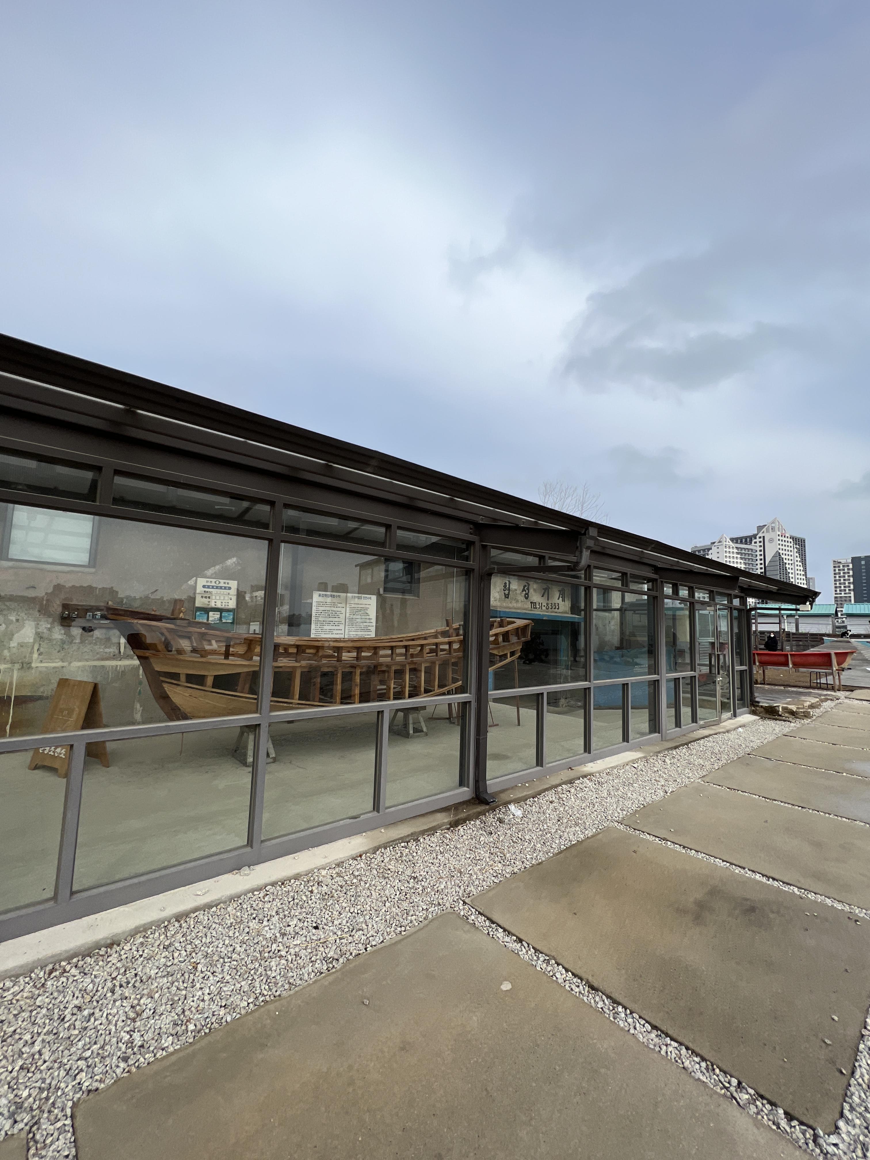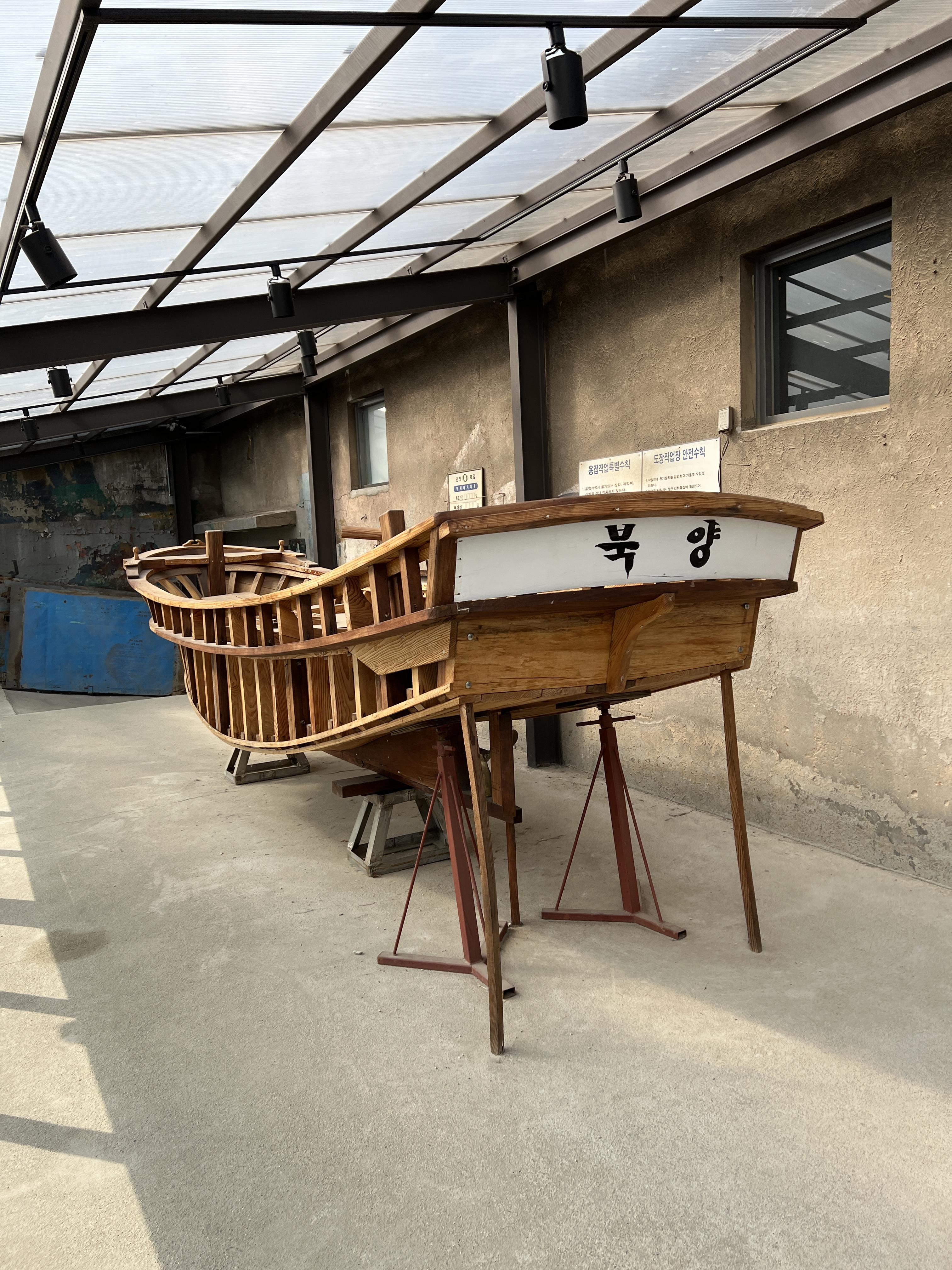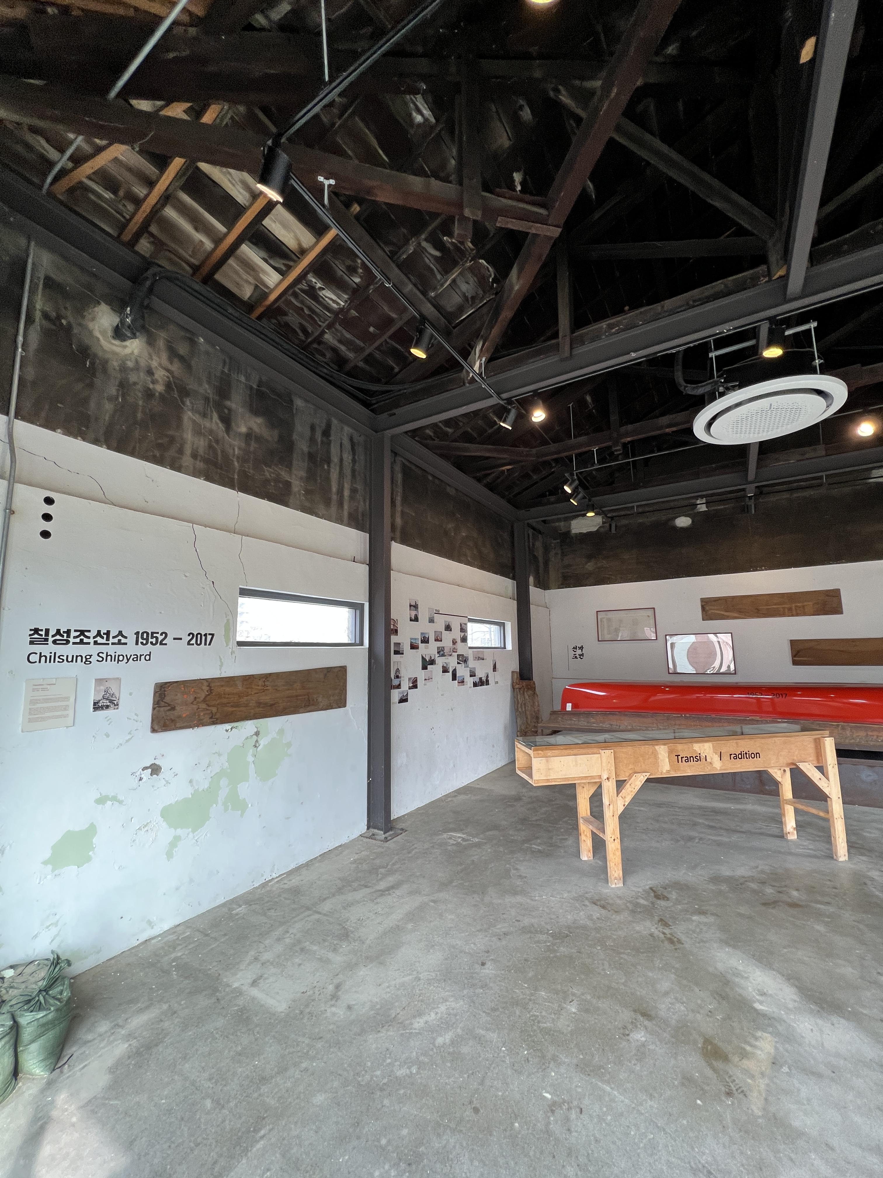 입구에서 들어오면 왼쪽에 건물이 하나 있는데 거기에 목조배가 보이고 안에 들어가면 협성기계 옛날에 조선소 작업을 했던 공간을 그대로 살려 놨더라구요. 안에는 카페 테이블처럼 3개정도 좌석이 있긴 했어요.