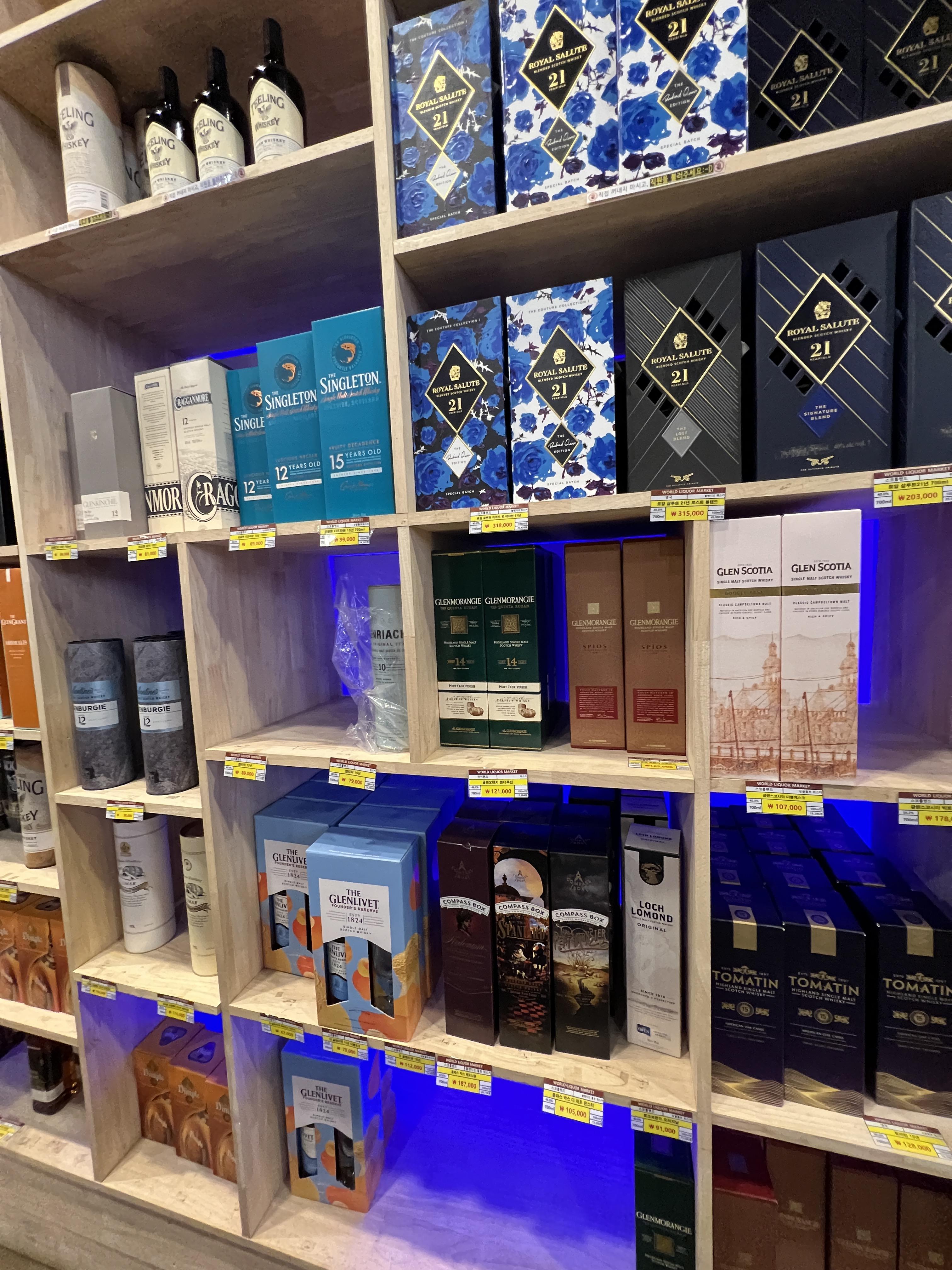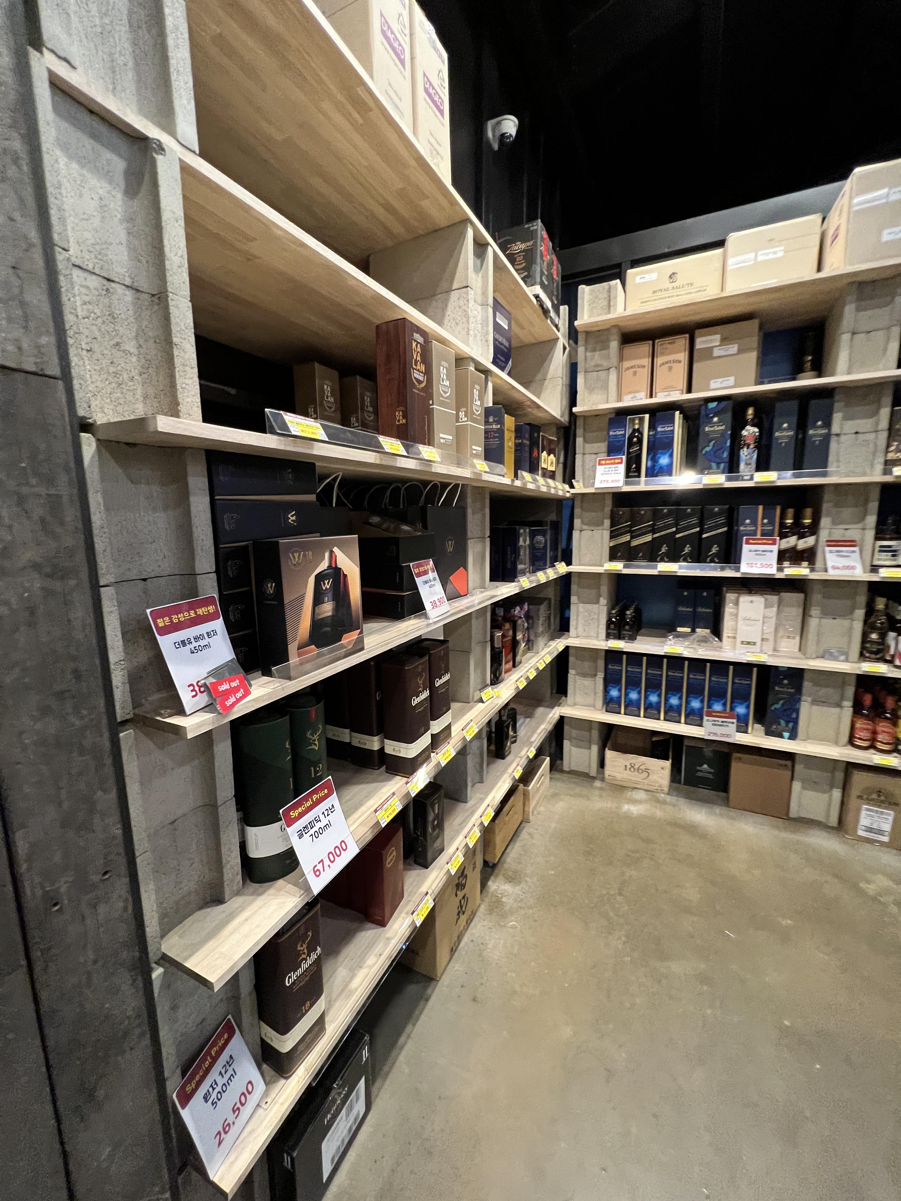 위스키 코너에 사람들이 정말 많아요. 짐볼, 잭다니엘, 산토리, 발렌타인, 조니워커 등 한정판 위스키부터 특이한 위스키 몇백만원짜리 위스키 등 엄청 다양하게 있어서 여기서만 있는 제품을 사러 서울, 경기도, 대전, 원주 등 전국에서 직접 찾아오시는분들도 있고 서울에서 속초 강릉 양양 다녀오다가 중간에 와서 사서 가시는분들도 많이 계시더라구요.