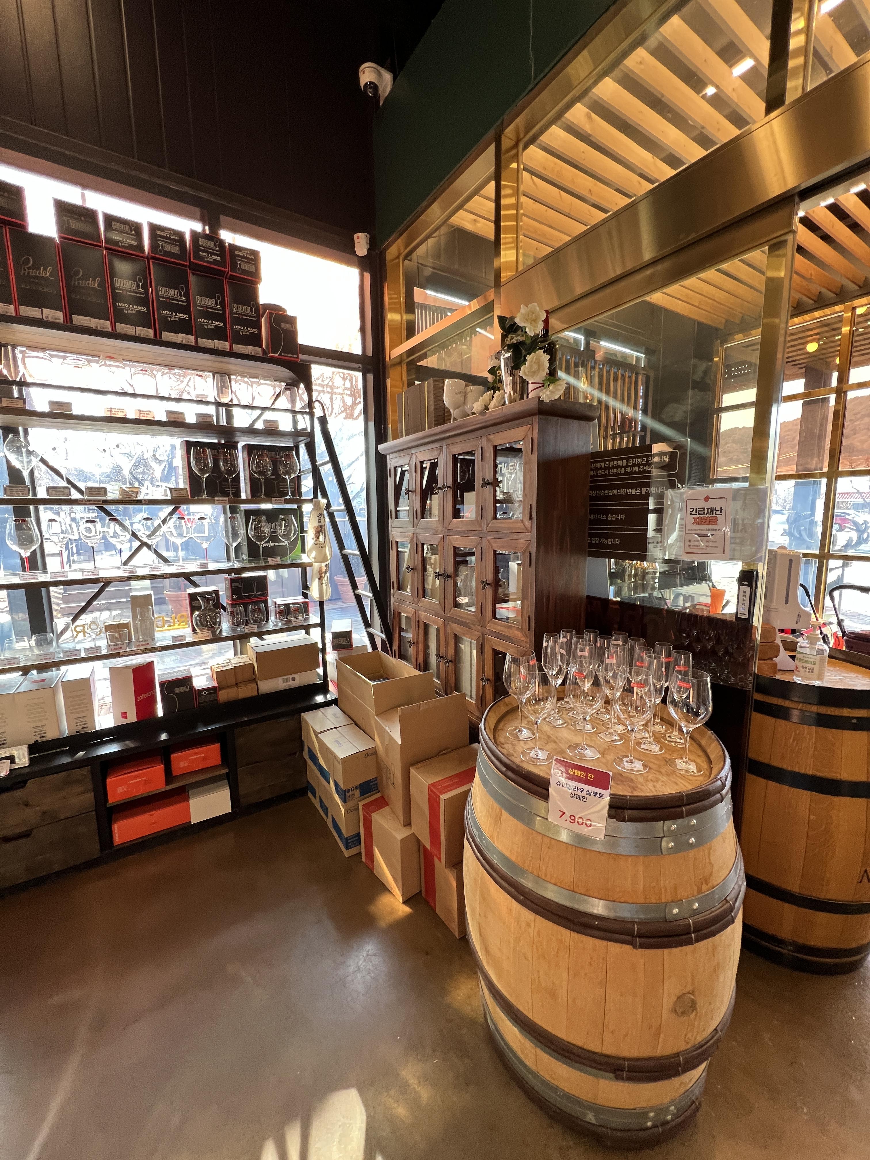 입구엔 이렇게 와인잔부터 있어요. 와인을 좋아하면 와인잔도 중요하다고 하는데 아직 전 잘 몰라서 구경만 했어요 ㅋㅋ
