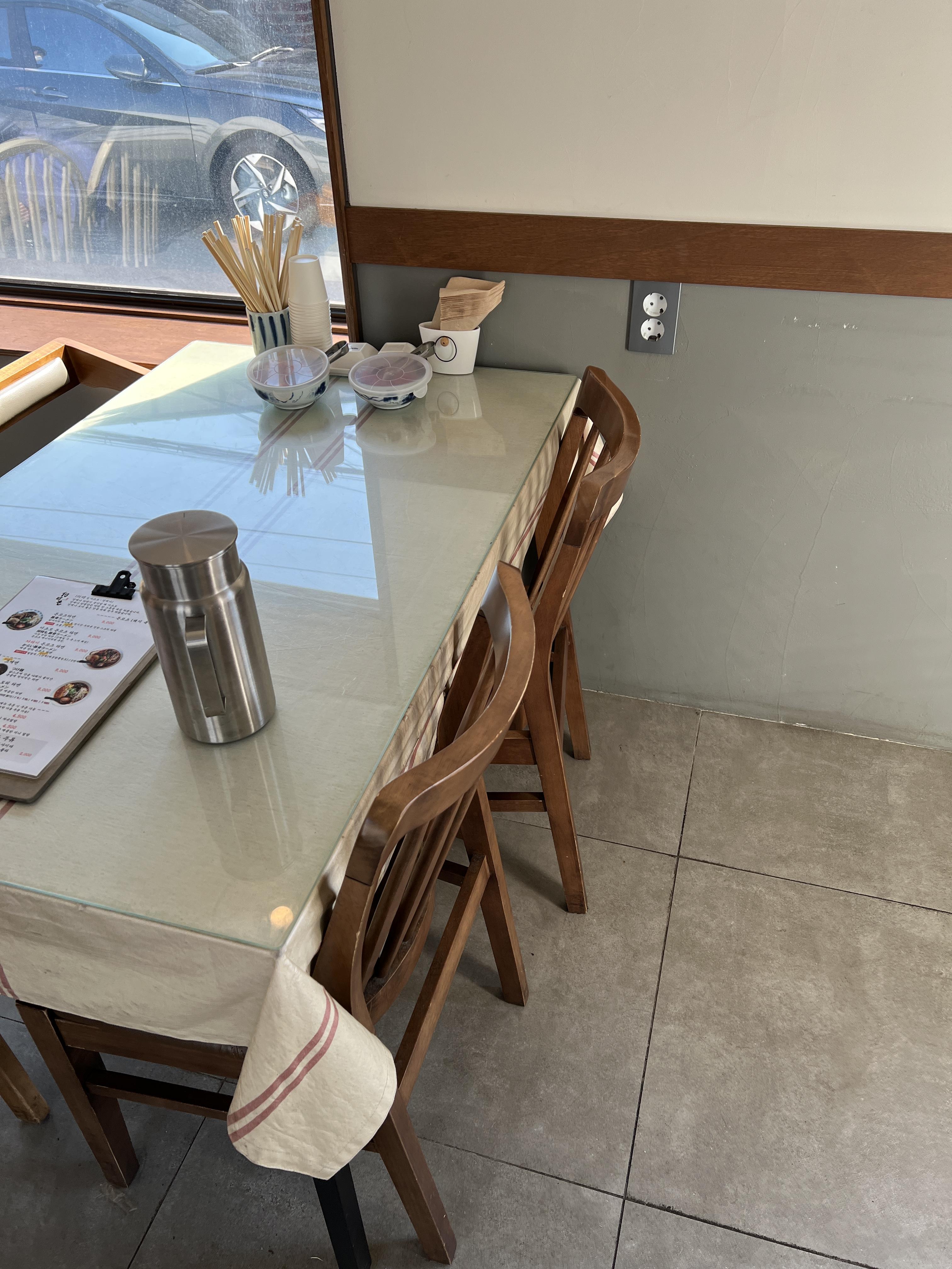 앞에는 카톡으로 대기 할 수 있는 테블릿이 있고 저는 점심 지나서 방문해서 앞에 웨이팅이 3팀이 있더라구요. 점심때 가면 사람이 더 많긴 한데 라멘집이라서 회전이 엄청 빠르다고 하더라구요.