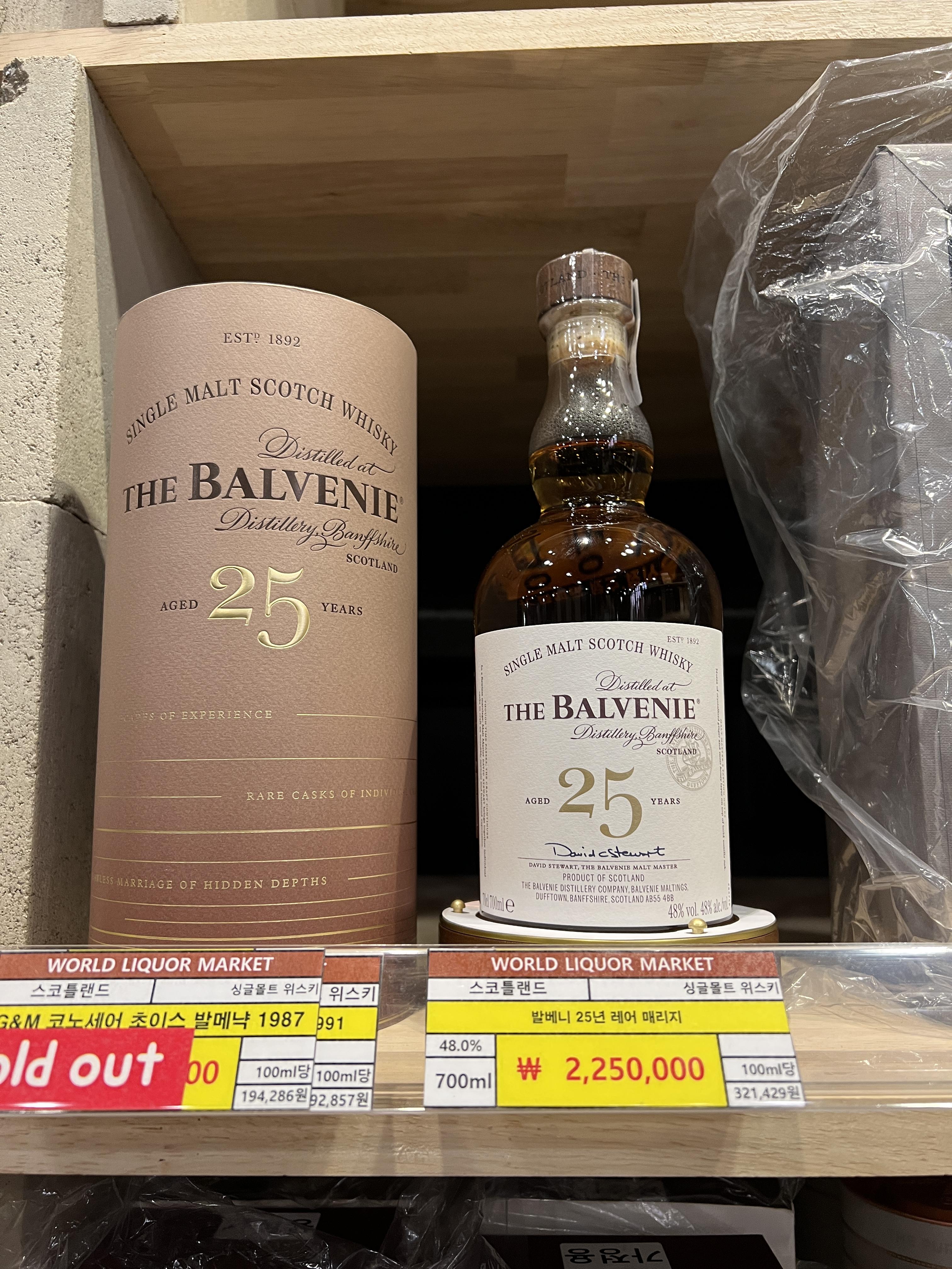 발베니 25년 레어 매리지 2,250,000원 이더라구요. 로또 되면 사러올려구요 ㅋㅋㅋ