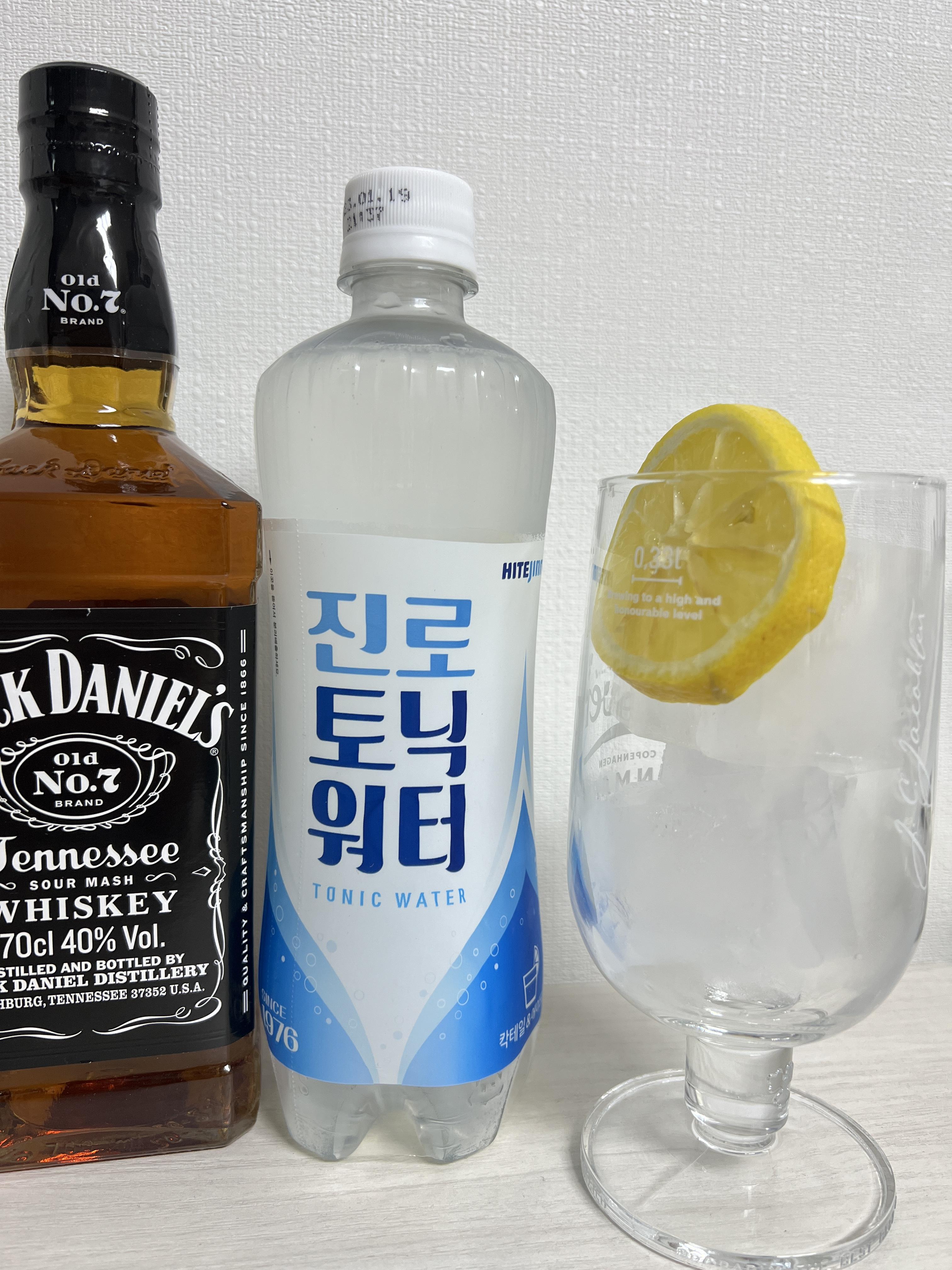 저는 잭다니엘스 소주잔 1잔 + 진로토닉워터 3잔 + 레몬 이렇게 해서 만들었는데 역시 기가 막히더라구요. 먹다가 살짝 위스키 향이 약한거 같아서 잭다니엘 조금 더 넣었더니 딱 먹기 좋더라구요.