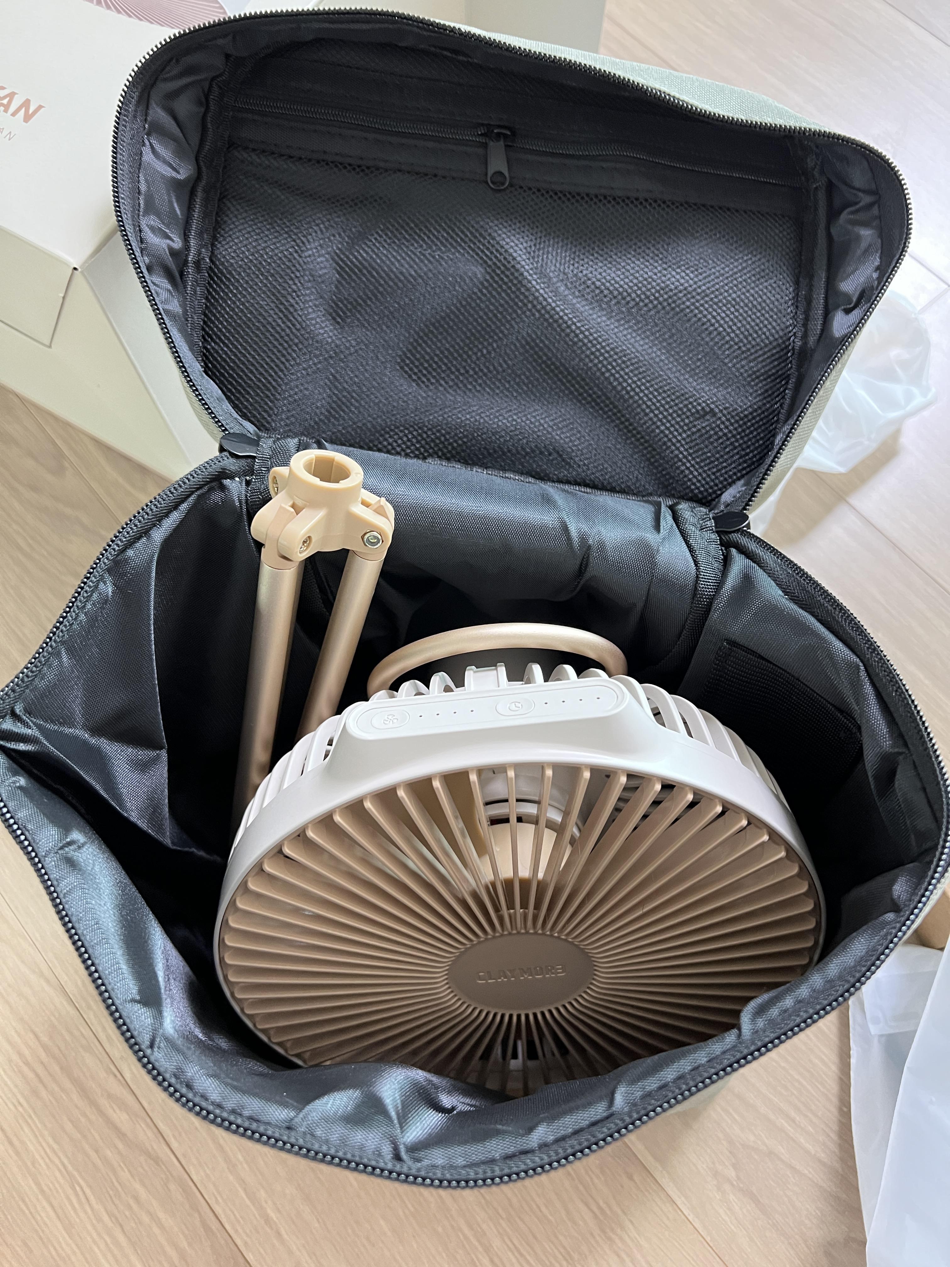 일단 선풍기 넣어보니깐 너무 좋고 위에 그물망도 있고 다른걸 더 넣어도 충분히 공간이 있더라구요. 제가 루메나선풍기만 3대 있는데 크레모아 선풍기를 구매한 이유가 텐트나 타프 위에 매달수 있다고 해서 구매를 하게 됐어요.
